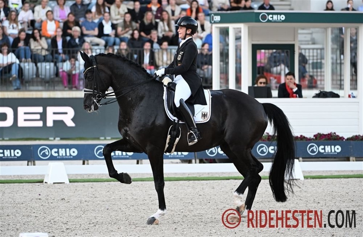 Nr. 1 i verden er den 12-årige DV-guldmedaljehoppe Wendy de Fontaine e. Sezuan/ Blue Hors Soprano (opdr. Kurt Gosmer), der sammen med tyske Isabell Werth er kommet hjem fra OL i 2024 og EM i 2025 med en holdmedalje og to individuelle medaljer.