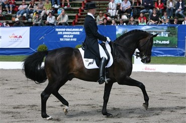 Med sin 11-årige Oldenburgervallak Le Mont d'Or e. Landjuwel Gold sejrede Anja Plönzke i lørdag aftens spotlight på Wiesbadens slotsplads i Grand Prix Kür med 75,800%. I Anjas kürprogram indgik hendes varemærke, nemlig fri galop ad midterlinjen til afslutsparade. Tyske Susanne Lebek blev nr. to med sin 12-årige hannoveranervallak Bardolino e. Convoi/Dux foran engelske Maria Eilberg og den 16-årige westfalervallak Two Sox e. Ehrentusch/Frühlingsrausch. På fjerdepladsen kom en meget interessant hollandsk ekvipage, nemlige Bart Veeze med den 11-årige KWPN-vallak Stefano e. Gribaldi/Actueel.