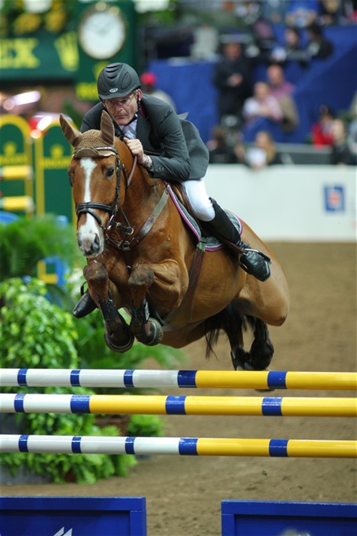 Heinrich Hermann Engemann, som sejrede i første afdeling af WOrld Cuppen i torsdags fejlde i fredagens anden runde, og han lå derfor inden finalen i dag på en 7. plads med 5 fejl - en fejlfri runde i fdag på Aboyeur har igen sendt ham ind i topkampen på en andenplads, for favoritterne fejlede. Ludger Beerbaum fik et nedslag i trekombinationen, der har kostet nedslag for halvdelen af klassens ryttere - med ialt 8 fejl ser han umiddelbart ud til at være ude af topkampen. Sidste års vinder Beat Mändli har ikke set helt overbevisende ud de første dage, men han og Ideo du Thot lå dog på 5. plads med fire fejl inden i dagen i dag, hvor det blev til to nedslag. For amerikanske Peter Wylde gik det som han frygtede - Esplanade begyndte at springe voldsomt op i luften og da rytteren ikke ramte afstanden ind i trekombinationen perfekt, kostede det fejl - ialt 12 fejl insdamlede han og slutter dermed med 15 fejl - som svenske Rolf-Göran Bengtsson, der med en fejlfri runde i dag er avanceret i stillingen. Den amerkanske rytter Rich Fellers klarede banen med blot et enkelt nedslag, og det betyder, at han ligger på 3. pladsen med 6 fejl. Det er dog World Cup vinderen fra 2005, Meredith Michæls-Beerbaum og Shutterfly som føre klassen efter en fejlfri runde i dag, og dermed har hun det bedste udgangspunkt inden den afgørende runde med kun 4 fejl.