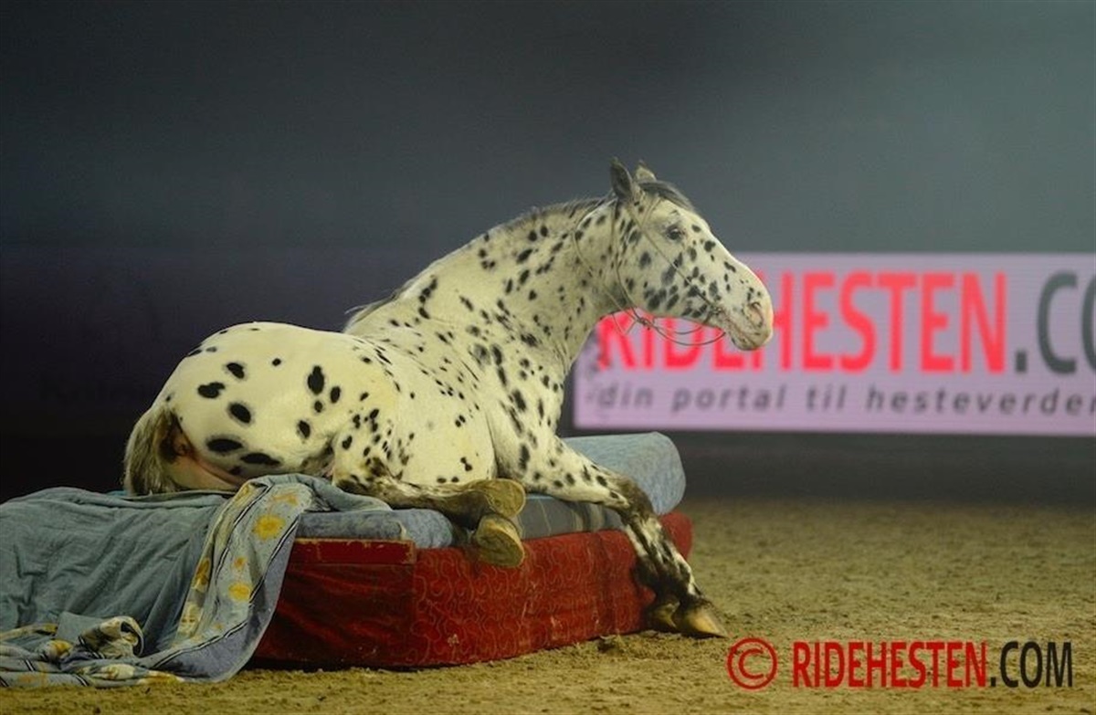 Det blev grint og klappet til gallashowet i Herning til dette års hingstekåring, da den østrigste showstjerne Rosi Hochegger og hendes meget charmerende hest, Scout opførte deres nummer, hvor Scout både kunne sno sine forben rundt om hinanden, grine, gabe og lægge sig ned i en seng.