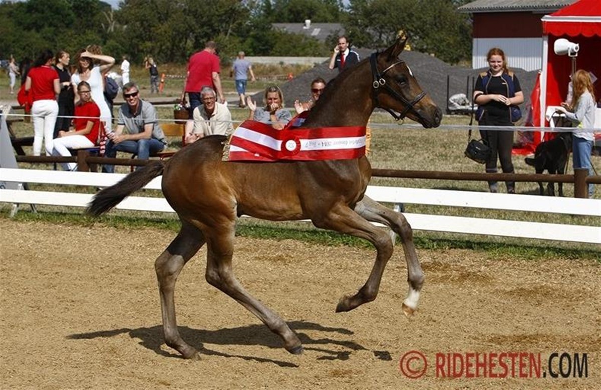 Bedste springbetonede hoppeføl, og dermed udtaget til Eliteskuet, blev katalog nummer 701, Ca-Di DD e. Carmargue/Corratus, avlet og ejet af Danish Derby Horse Shows Aps. Andenpladsen, og dermed også en reserveplads til Eliteskuet, gik til katalog nummer 707, Panama Sejh e. Untouchable/Coronado, avlet og ejet af Helle og John Søndergård Nielsen.