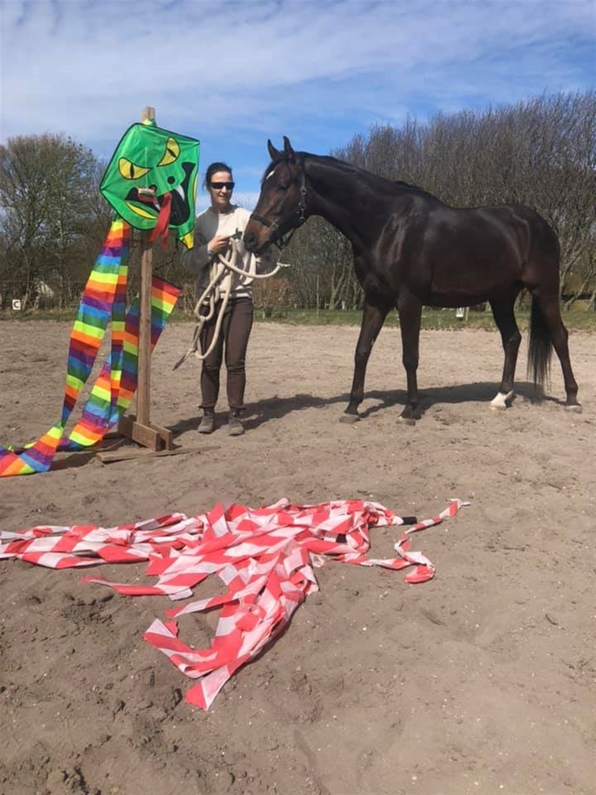 Her er det Maria Halina Dziadzio-Jensen (billede 1) og Michaela Blomquist, som træner miljøtræning med sin hest, hvorde arbejder på at vænne hesten til plastik og presseninger.