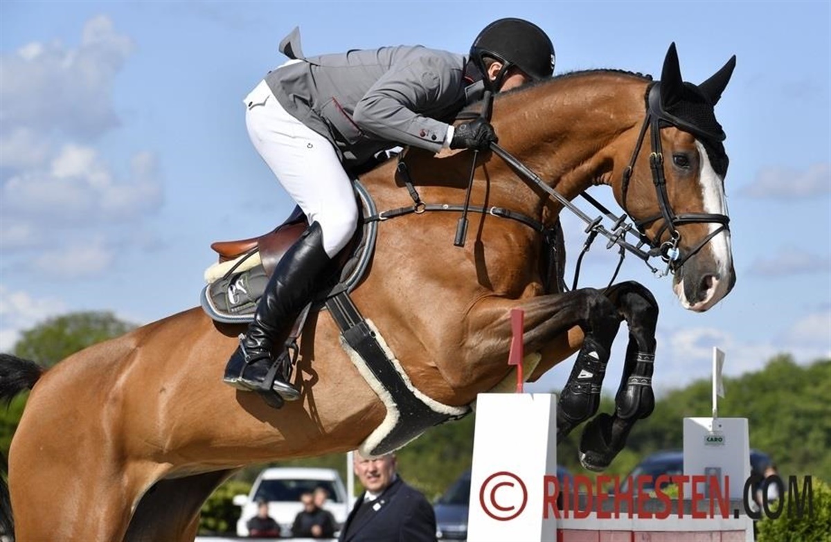 Thomas Sandgaard rider på banen på Amarone. Equipagen har tidligere opnået en 3. plads ved Nations Cup i Italien.