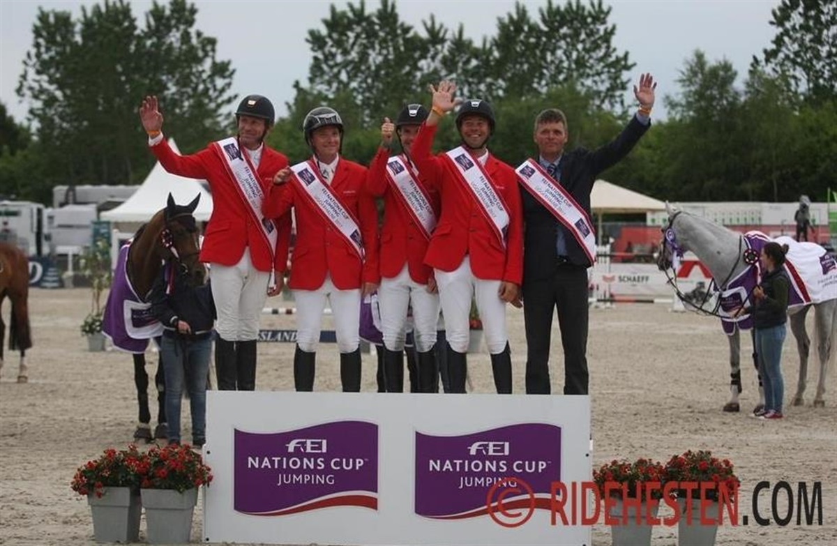 Det bliver danmarksmester Thomas Sandgaard, Thomas Velin, Andreas Schou, Rikke Haastrup og Søren Pedersen, der skal forsvare de danske farver, når EM i springning løber af stablen sammen med EM i dressur og paradressur i Göteborg den 21. – 27. august. Hvilke fire af rytterne, der skal ride på holdet, afgøres lige op til mesterskaberne. Karina Leichle er reserve