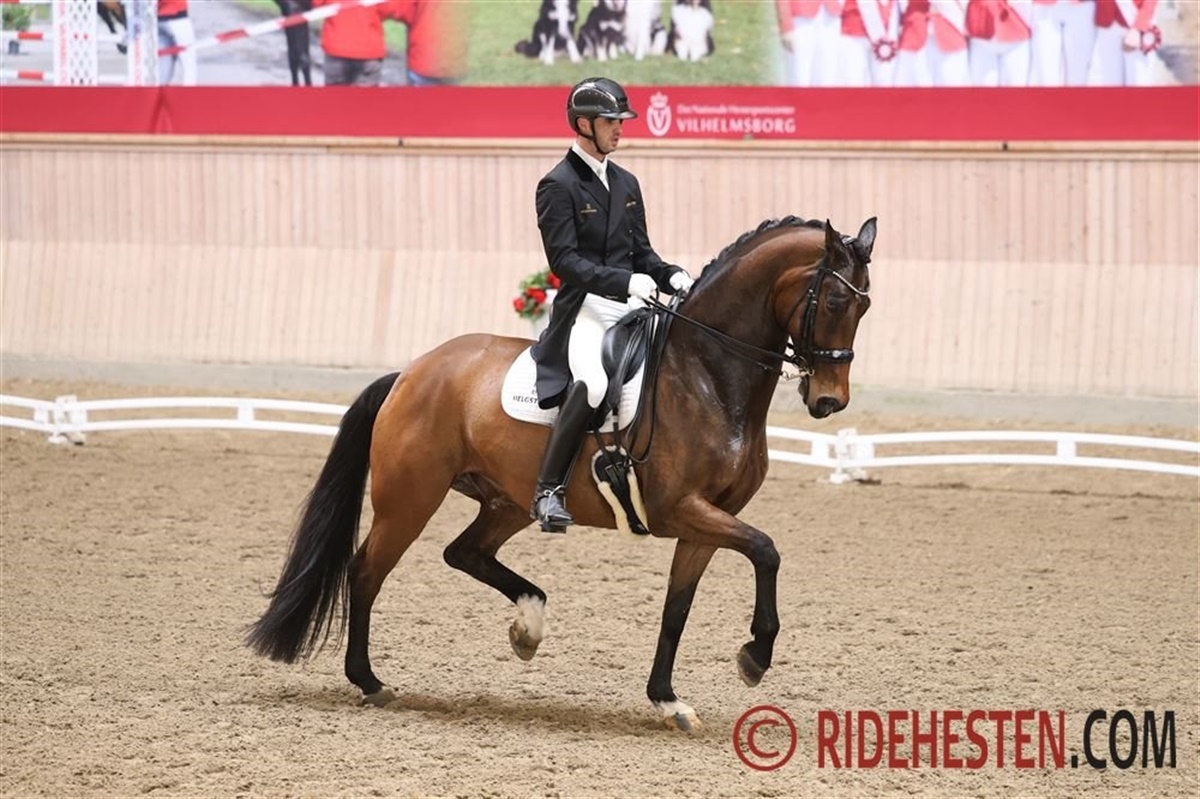 Micala Damm - Frydenberg tog andenpladsen med 70,176% og Eric Guardia Martinez tredjepladsen med 68.728% på hesten Hilus MHB (SWB) e. Johnson/Don Primero (opdr. Madeleine Karlsson og Fredrik Spång). Hilus MHB blev tilbage i 2020 redet af Cathrine Laudrup-Dufor på PSG niveu, før den flyttede til England hvor den startede under Charlotte Dujardin i 2022. I dag blev den for første gang vist frem siden da, denne gang under Eric.