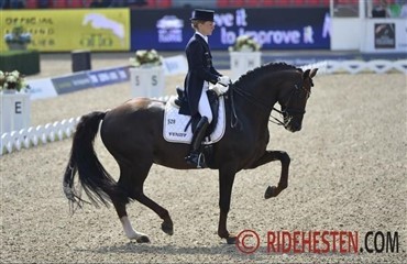 Cecilie Dybro Jensen fortsatte den gode ridning fra fredagens Prix St. George, hvor hun blev placeret som nummer 3. Søndag blev hun placeret på en førsteplads, med 72,061% på hesten Zagori e. Blue Hors Zack/Sir Donnerhall II (opdr. Hans-Heinrich Brüning)