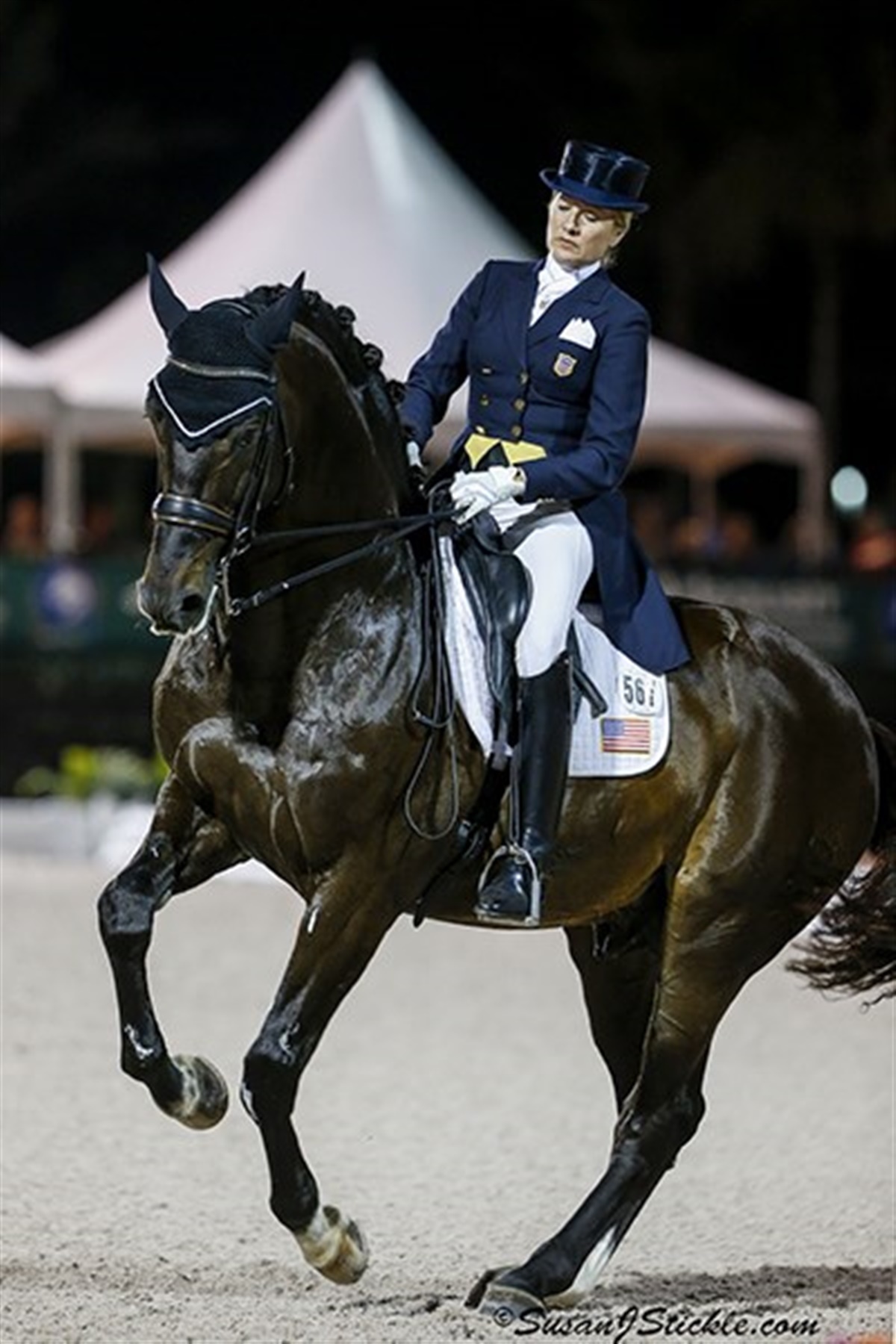 Efter en lidt skuffende indsats i torsdag for amerikanske Tina Konyot og hendes hingst Calecto V e. Come Back II/Rastell (opdr. Inge Toft) kom også denne ekvipage stærkt tilbage i küren fredag aften.