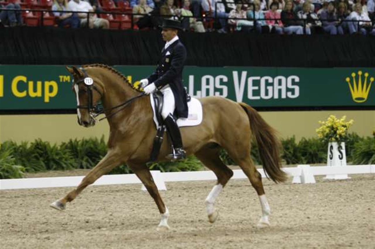 Isabell Werth sejrede som forventet i Grand Prix-klassen i World Cup finalen i Las Vegas, der har Rolex som hovedsponsor. Sejren kom i hus efter devisen; lad os ikke risikere noget! "Hannes", som Isabell kalder sin store Weltmeyer-søn, fik ret hurtigt øje på alle de mange fotografer, som var stuvet sammen i to "klumper" i den ene ende. Da Warum Nicht gik ind i den første piaffe fik han tid til at kigge nøjere på det forsamlede fotografkorps, og det skræmte ham (forståeligt nok). Alene på grund af Isabells store rutine fik hun bugseret den nervøse vallak ud af piaffen og videre i programmet, som absolut ikke var fejlfrit. Begge serier, zig-zag'en i galop og den sidste travøgning blev vist med fejl, alligevel honorerede dommerne hende med 73% for de øvelser med fejl, og så var den klasse ligesom afgjort til favorittens fordel. Isabell sejrede med 74,792% foran Steffen Peters/Floriano, USA, med 72,875% og med Kyra Kyrklund/Max på tredjepladsen med 71,708%. Mange af hestene virkede trykkede af atmosfæren og trætte, og det ses også på karaktererne, der kommer ryttere til finalen med 64% hvilket bestemt ikke er vanlig World Cup standard. Dommerne brillerede heller ikke med stor enighed i bedømmelserne, ikke engang blandt de første fire ryttere, var der fælles fodslag i dommerstanden. En ting var dommerne dog enige om; at have Isabell som vinder. Andreas Helgstrand, som i går var meget afklaret med sin situation, var i dag godt og grundigt træt af, at han ikke kunne ride ind i klassen. Han og Matiné havde uden tvivl også pyntet væsentligt på feltet. På positivsiden kunne han dog bekræfte, at Matinés skade ikke er forværret, men langsomt bedres.