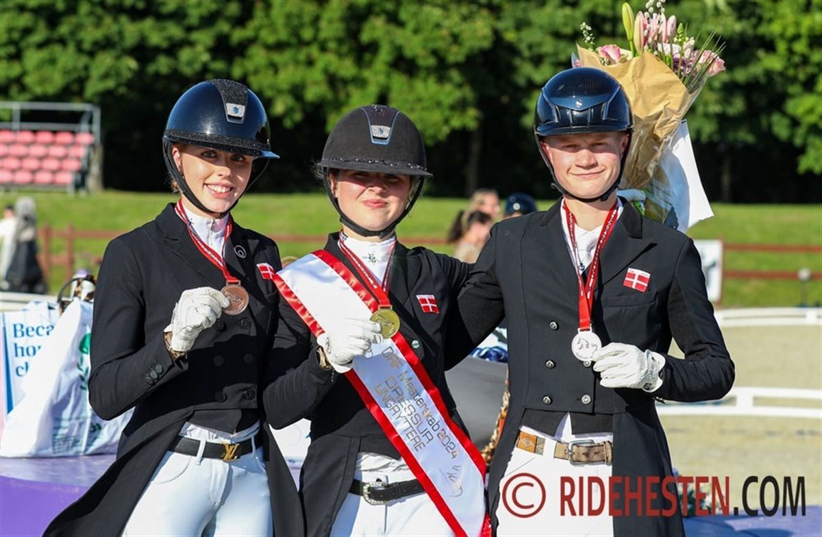Hos ungrytterne lagde Lea Torabi sig sikkert i spidsen efter første afdeling lørdag, men intet er sikkert, før kürfinalen er redet. Endnu engang så Torabis 14-årige vallak Bjergåkras Amaranth e. Ampère/ Troll ud til at være helt med sin rytter, og med en score på 74,475% distancerede Lea sine konkurrenter yderligere. Det blev sammenlagt til en samlet sejr og guldmedalje i DRF-mesterskabet med i alt 146,659 procentpoint.