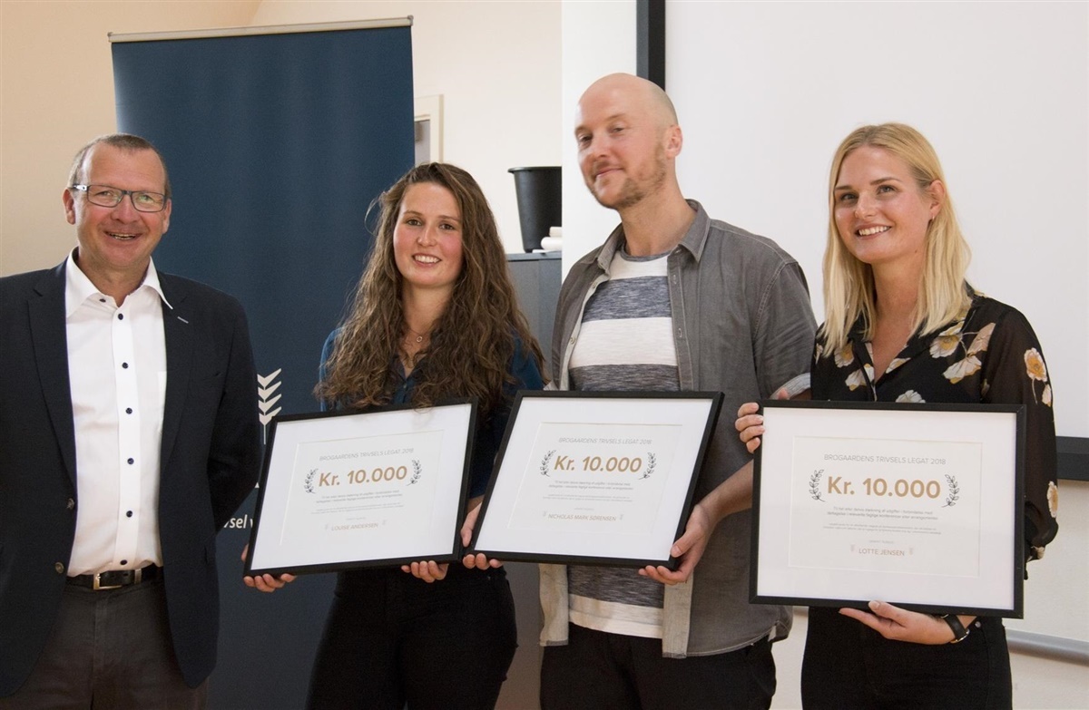 I februar i år indstiftede Brogaarden Korn- og foderstoffer APS "Brogaardens Trivselslegat". Legatet er på 30.000 kr., som fordeles mellem tre legatmodtagere fra en af de tre uddannelseslinjer: forsøgsdyr, zoo og hest. Legatet er indstiftet for at motivere de studerende til at gøre en ekstra indsats for at bidrage til at afdække og formidle vinden til fremme af sundhed og trivsel hos forsøgsdyr, dyr i zoologiske haver og i hestehold. Se hele formålet HER.