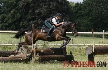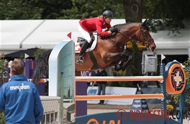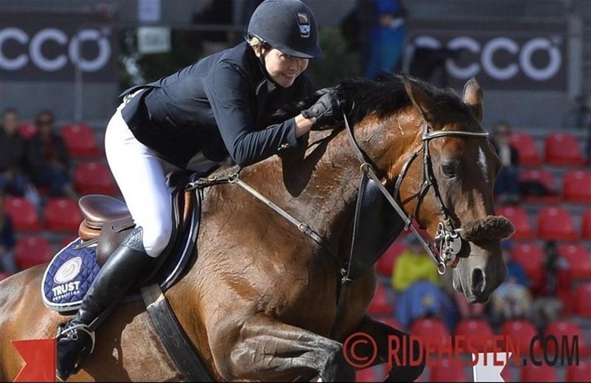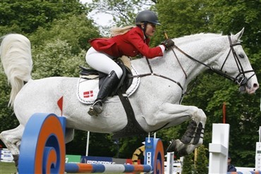 Næsten i mål måtte Christina Liebherr i lørdags et tur i vandet, da hendes hest blev usikker på vandforhindringen og gjorde det meget svært for rytteren at blive hængende. Hun kom ikke til skade og tog det ufrivillige bad i rigtig god stil.