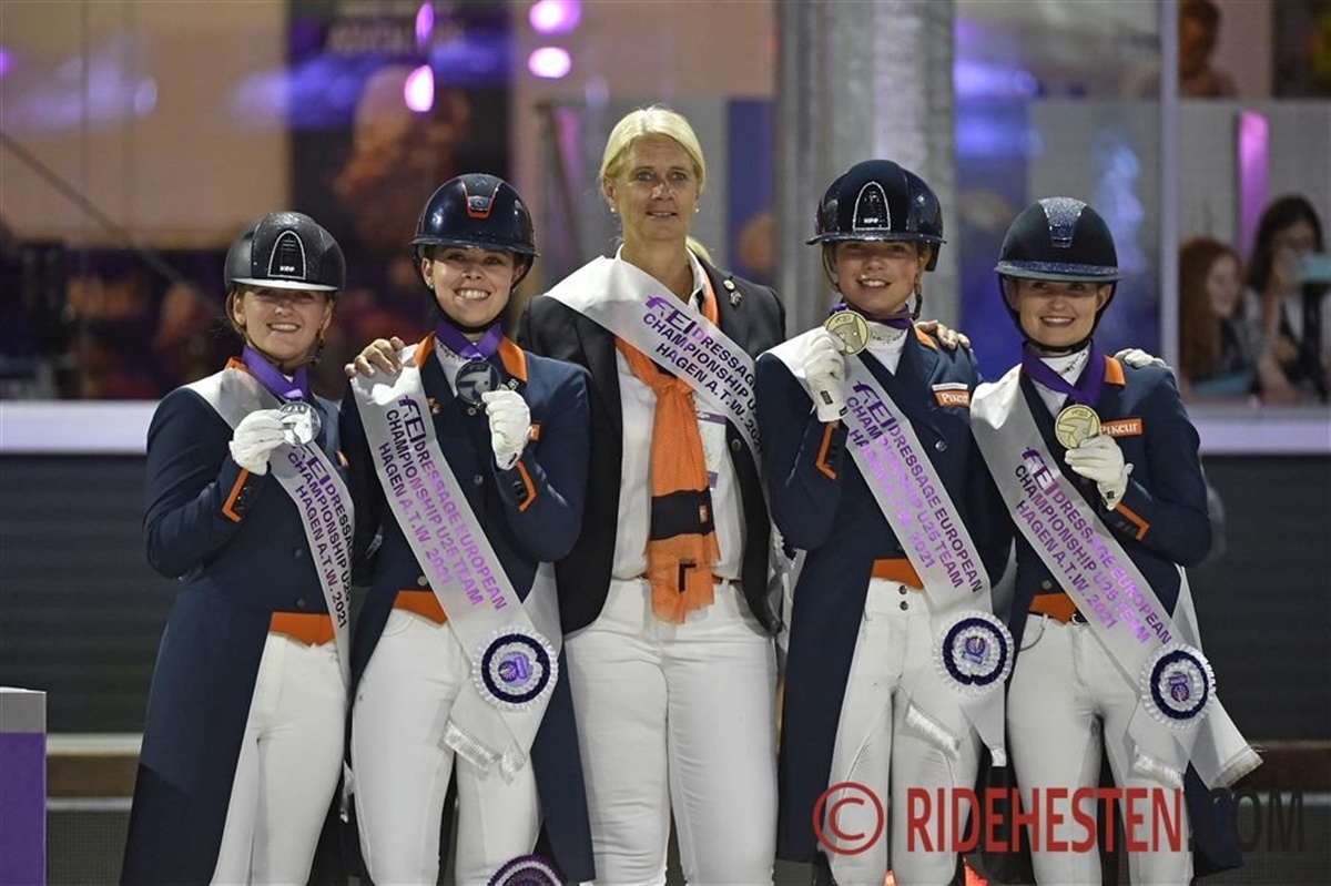 Desværre lykkedes det vores svenske naboer at gå udenom og ligge sig ind på bronzepladsen. Man kunne virkelig godt have ondt de danske piger at komme herfra med bronzemedaljen, men sådan skulle desværre ikke gå i år. Helt suverænt som dette års europamestre for U25, blev det Tyskland der havde Semmieke Rothenberger som anker mand, da hun individuelt blev den bedste i klassen med 77,05% på hoppen Flanell e. Apache/Blue Hors Don Schufro. Ved præmieoverrækkelsen havde Semmieke taget hendes anden hest med, Dissertation Frh, men midt i æresrunden blev hoppen vild og Semmieke måtte en tur i sandbunden. Efter en galoptur rundt i areanen kunne Semmieke selv indfange hoppen og trække lidt på smilebåndet.
