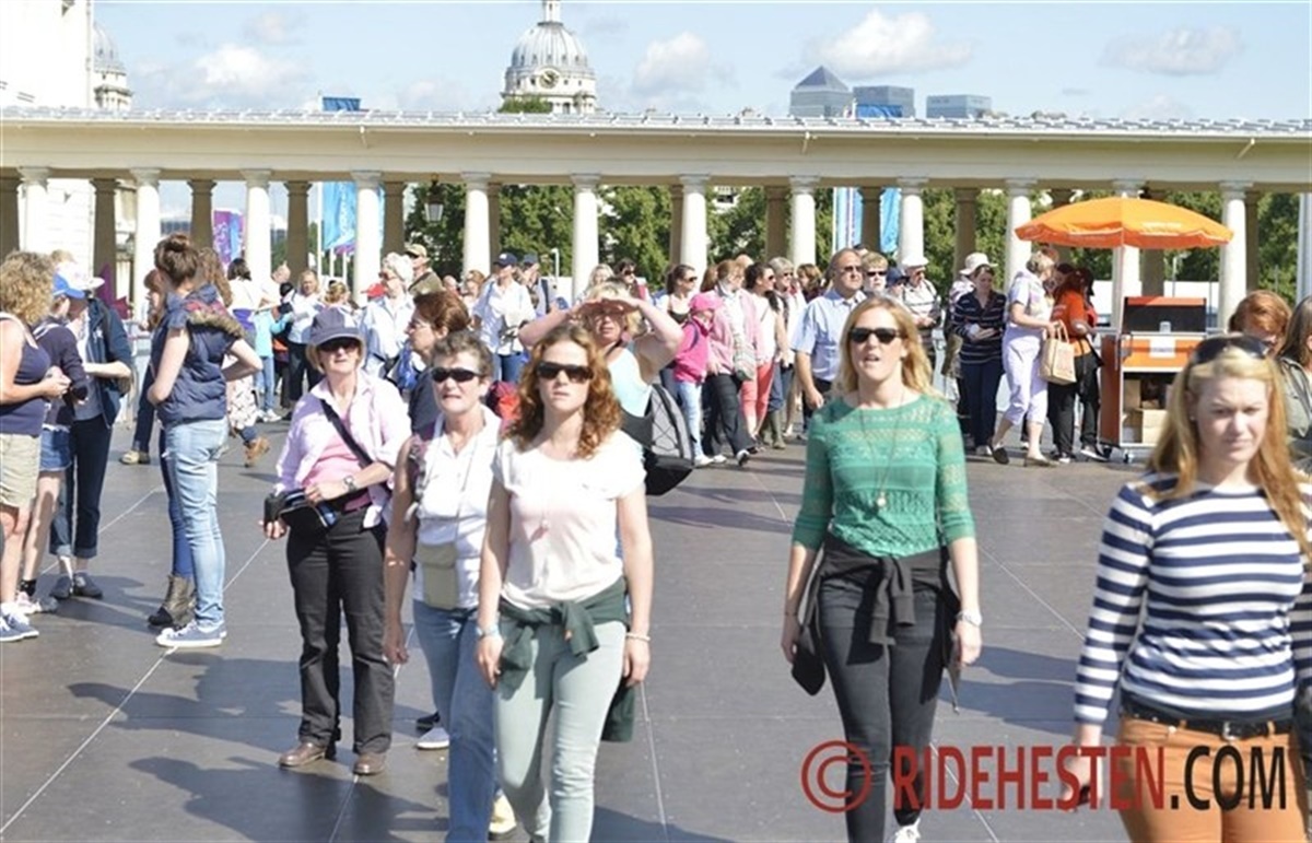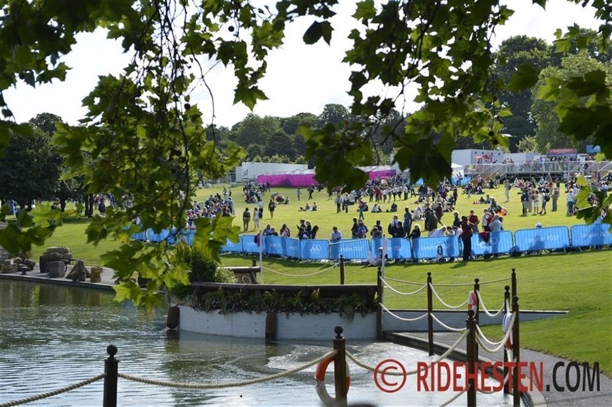 Kl. 12.30 rider den første rytter, Boyd Martin fra USA ud på den seks km lange terrænbane i den smukke, fredede park. Terrænbanen løber rundt om tribunerne i et særdeles kuperet terræn. Da jeg kom ind med lokalbussen kl. 8,20 til morgen var de første tilskuere på vej ud i terrænet. Det bliver en lang dag for publikum (og fotografer) for sidste rytter, Mark Todd fra New Zealand lukkes ud på ruten kl. 17,22. Konkurrencen er helt åben, for 9-10 ryttere ligger med en afstand af omkring 2 strafpoints fra hverandre, og rytterne får 0,4 strafpoints for hvert sekund de overskrider ridetiden på 10,03 minutter. Anne-Mette Binder, den danske overdommer vil følge banen via 15 monitorer fra centralt hold. Rund om på banen er der 23 dyrlæger klar til at hjælpe, og et stort antal offcials vil holde et våget øje med ekvipagerne. - Det er ingen hemmelighed, at vi har tre heste, vi vil holde ekstra øje med, fortæller Anne-Mette, men ellers er hestene ved dette OL i topform. Det skal de også være for at kunne håndtere det meget kuperede terræn. - Vi skal alle værne om sportens image, så selvom det er rytternes ansvar at mærke om deres heste er fit og fortsat har power til at klare banen, så står der mange officials klar til at hjælpe med til at den rette beslutning bliver truffet for hestenes skyld, understreger hun. Det er en bane som vil tærre på hestenes kræfter, og da der er mange sving, vendinger og publikum er meget tæt på hele tiden, så vil det også stille krav til rytternes mentale overskud. Der vil være nogle forhindringer, som dommerne i særlig grad vil holde øje med, for selvom banens forhindringer ikke er så voldsomme, som vi nogen gange har set i konkurrencer på dette niveau, så vil træthed også spille ind. Der hviler et stort pres på Englands ryttere, fortælle Anne-Mette Binder, og hjemmepublikummet har sat næsen op efter en sejr. England er pt. på tredjepladsen efter Tyskland, OL vinderne fra Hongkong, og Australien. Sverige ligge på fjerdepladsen, og da de har et rutineret team til start, så er der mulighed for avancement ind i medaljerække for vores Skandinaviske broderland. Lige nu, to timer før starten, summer pressecenteret af liv, for fotografer fra andre sportsgrene er kommet til Greenwich Park i dag, og der bliver kamp om pladserne ved forhindringerne. I praksis betyder det, at jeg i løbet af den næste halve time, må gå ud for at sikre mig en plads, og så vente i halvanden time på at den første rytter kommer forbi.