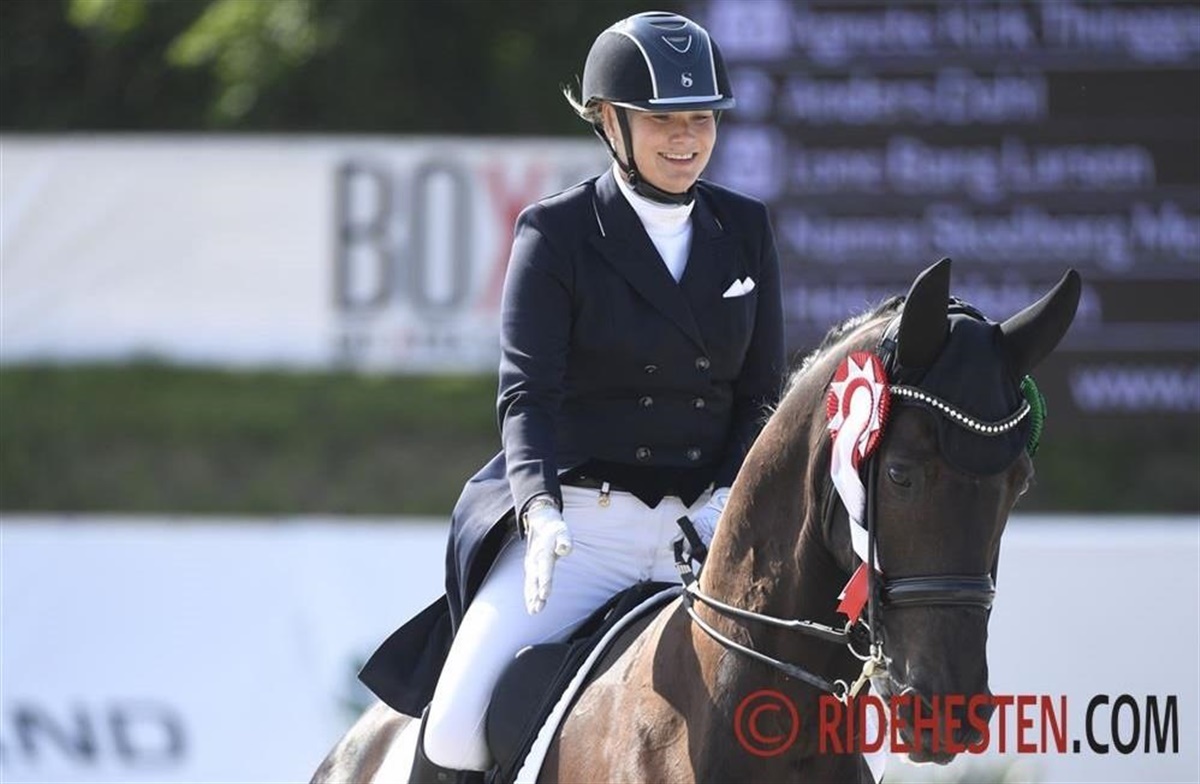 Med sin 13-årige DV-vallak Bakkelys Onandt e. Onassis/ Michellino (opdr. Preben Hald) red hun sig igennem den silende regn til sejr. I de kvalificerende Grand Prix torsdag blev hun nr. 4.