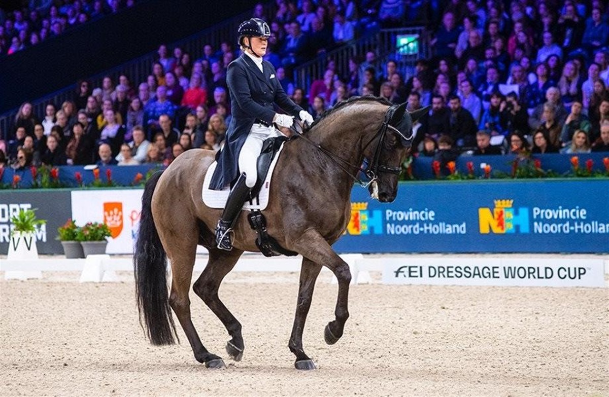 Den 45-årige dressurrytter Lone Bang Larsen repræsenterer Danmark ved det store World Cup stævne i Amsterdam sammen med den danskopdrættede Bakkely's Onandt e. Onassis/Michellino (opdr. Preben Hald). Det er hendes første World Cup med den 13-årige hingst, og stævnet har i den grad været en succes.