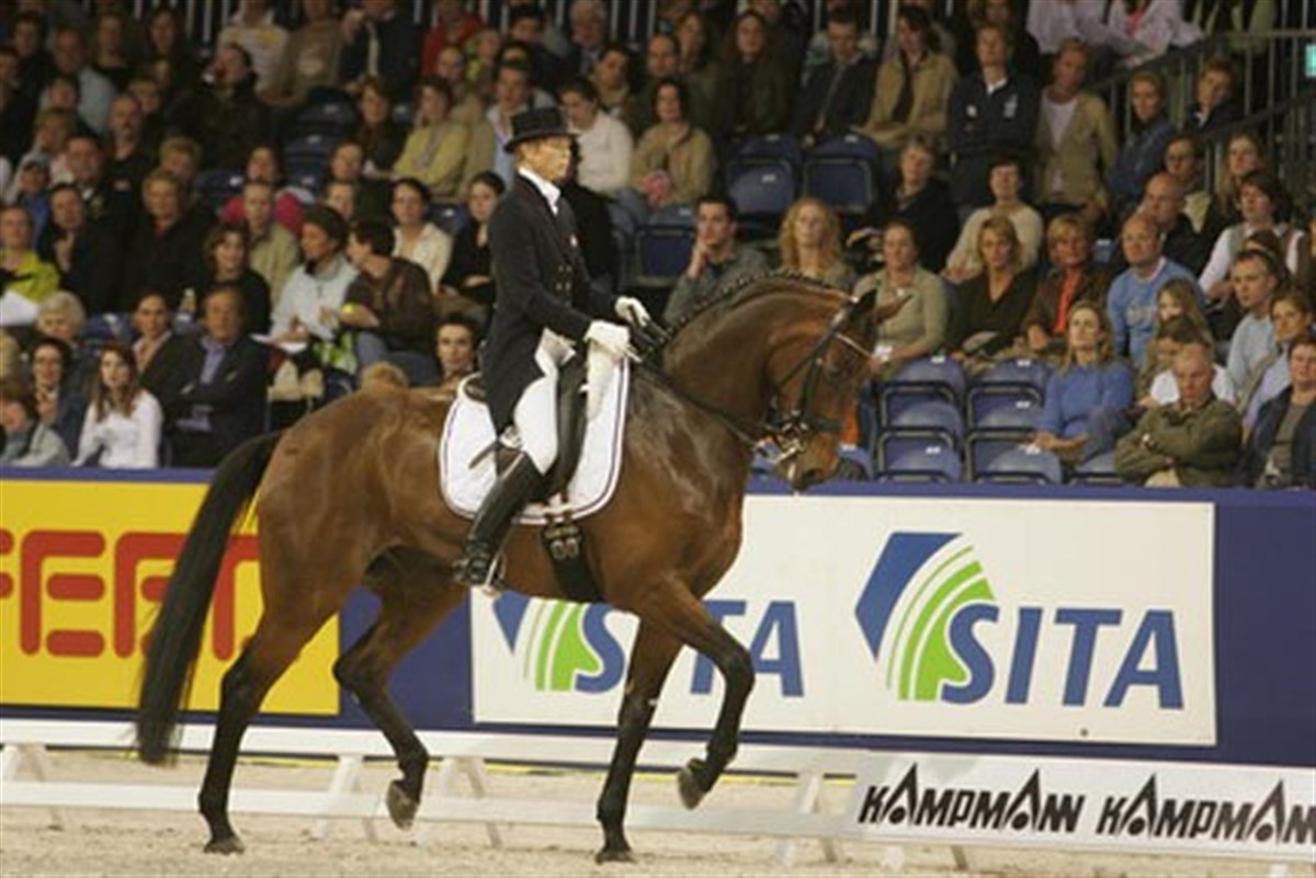 Det lykkedes lige akurat for Lone Jørgensen at ride sig ind i World Cup finalen, der afgøres lørdag eftermiddag i Amsterdam. Lone Jørgensen og Hardhof's Ludewig G dansende igennem Grand Prix-programmet uden at lave deciderede fejl, men de manglede lige den sidste udstråling og en smule ekstra power. Lone selv var tilfreds og forklarede, at Ludewig virkede en smule træt inde på banen og derfor manglede hun lidt ekstra dynamik i piafferne og i changementsserierne. I World Cup finalen i Las Vegas sidste år sluttede parret på en samlet 11. plads og den placering håber Lone mindst at gentage i år. Da kür programmets sammensætning er afgørende for resultatet, afventer hun lørdagens finale med en vis spænding. Hun bruger samme kürprogram som sidste år med nogle ændringer og forbedringer. Ludewig bed sig i tungen under formiddagens træning, men i eftermiddags var der ingen problemer, men det var ikke den bedste optakt til Grand Prixen, erkender Lone Jørgensen.