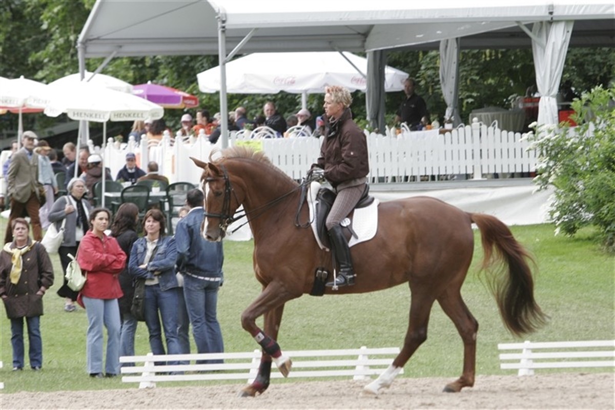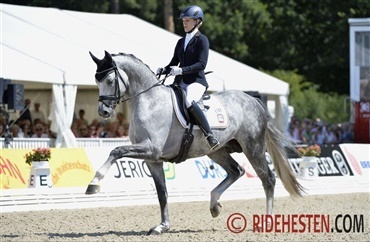 Den danske landsholdsrytter Lone Jørgensen debuterede i dag med sin 8-årige DV-hoppe, Donna Asana, i Grand Prix ved weekendens stævne i tyske Münster. Donna Asana e. Blue Hors Don Schufro/Diamant opnåede med den danske landsholdsrytter på ryggen en fantastisk 1. plads. Med 69.951% point var det lige ved og næsten, at ekvipagen rundede de magiske 70% - de flotte procentpoint resulterede i, at ekvipagen slog tyske Alexandra Simons-de Ridder/Wellington, der opnåede 69.073% og Isabell Werth/First Class med 68.293%. Den 8-årige Donna Asana er opdrættet af A.M. Blicher Jacobsen og er ud af Erna og Axel Jørgensens hoppestamme. Også danske Anna van Olst deltager i stævnet, hvor hun i dag var med i en S-klasse med Exquis Clearwater e. Carpaccio/Limebrand, hvor ekvipagen opnåede at blive nr. 20.