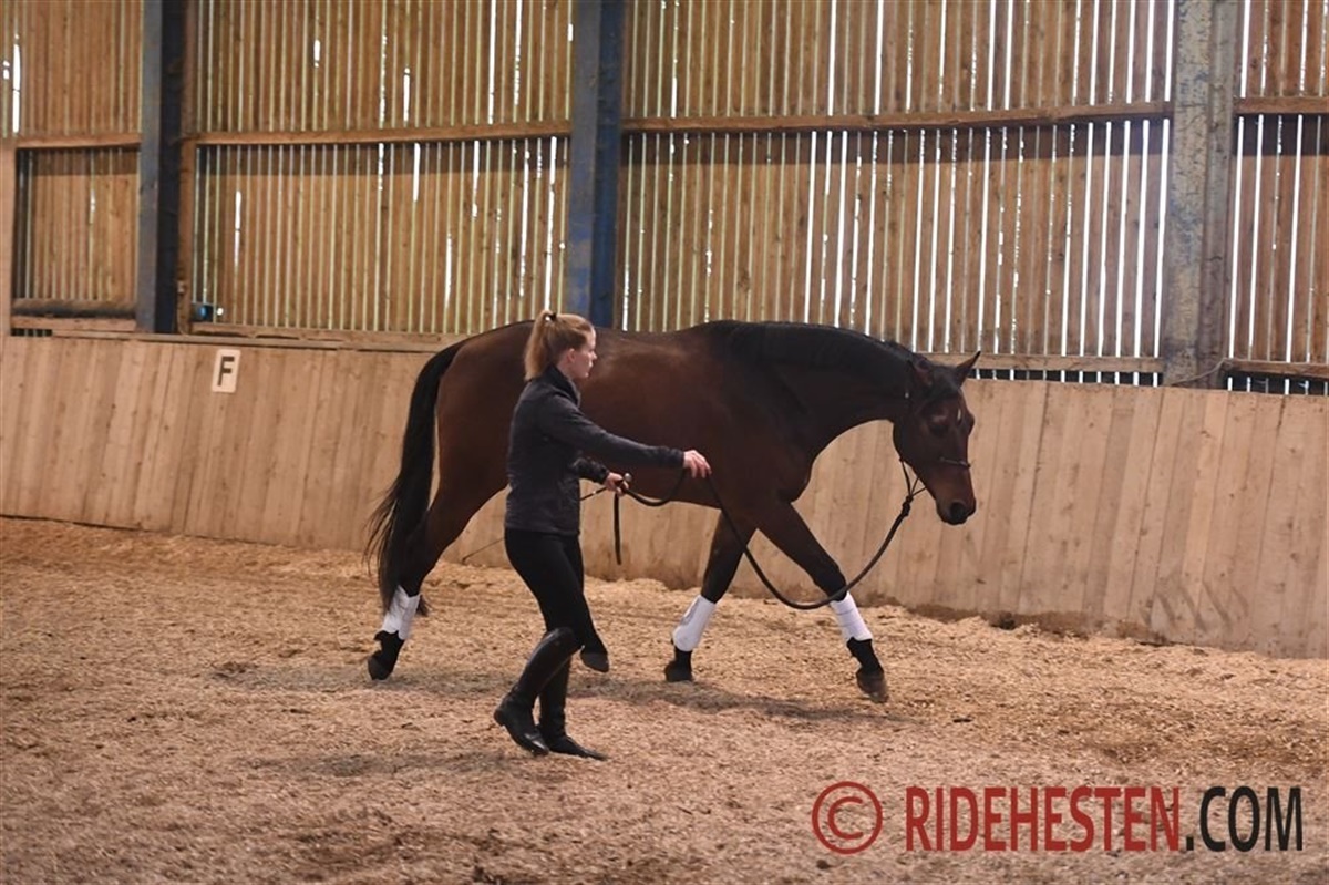 Et eksempel kunne være en hest, der i takt med, at man kommer længere i træningen, bliver mere og mere nervøs og opmærksom på alting omkring sig. Ofte er fokus på, at det er træls, at hesten er bange og anspændt, og at det ikke giver nogen mening, hvorfor den ændrer sig, og man rigtig gerne vil arbejde med ”miljøtræning og plastik”, fordi så er problemet løst. Her starter jeg altid med at kigge på hesten fra jorden, og hvordan den bruger kroppen uden udstyr (også for at vurdere om adfærden evt. er smerterelateret). Det kan være fokus på, om hesten spænder af i især baghovene, når den sætter dem i jorden og bare lader dem ”falde”, eller om de bliver sat spidst ned i jorden, (hvis hesten ikke bare placerer hovene og lader dem lande uden spændinger i koden, så er det ofte enten spændinger i ryg eller lænd eller en ryg, der ikke arbejder ordentligt, som er til grund for det), om hesten tilter så meget, at jeg kan se begge baller, eller om den er i balance, og jeg kun kan se en side af hesten. Jeg ser også på, om hesten tør/kan stække nakken nok til, at hovedet placerer sig lidt foran lod, så den er afslappet og afspændt i overlinjen, eller om den holder på sig selv, virer med hovedet, slår fra eller krøller dig sammen – også om den er i balance og lige – og ikke kun om hesten sporer rigtigt, men også, om der er lige meget hest på hver side af rygraden osv.