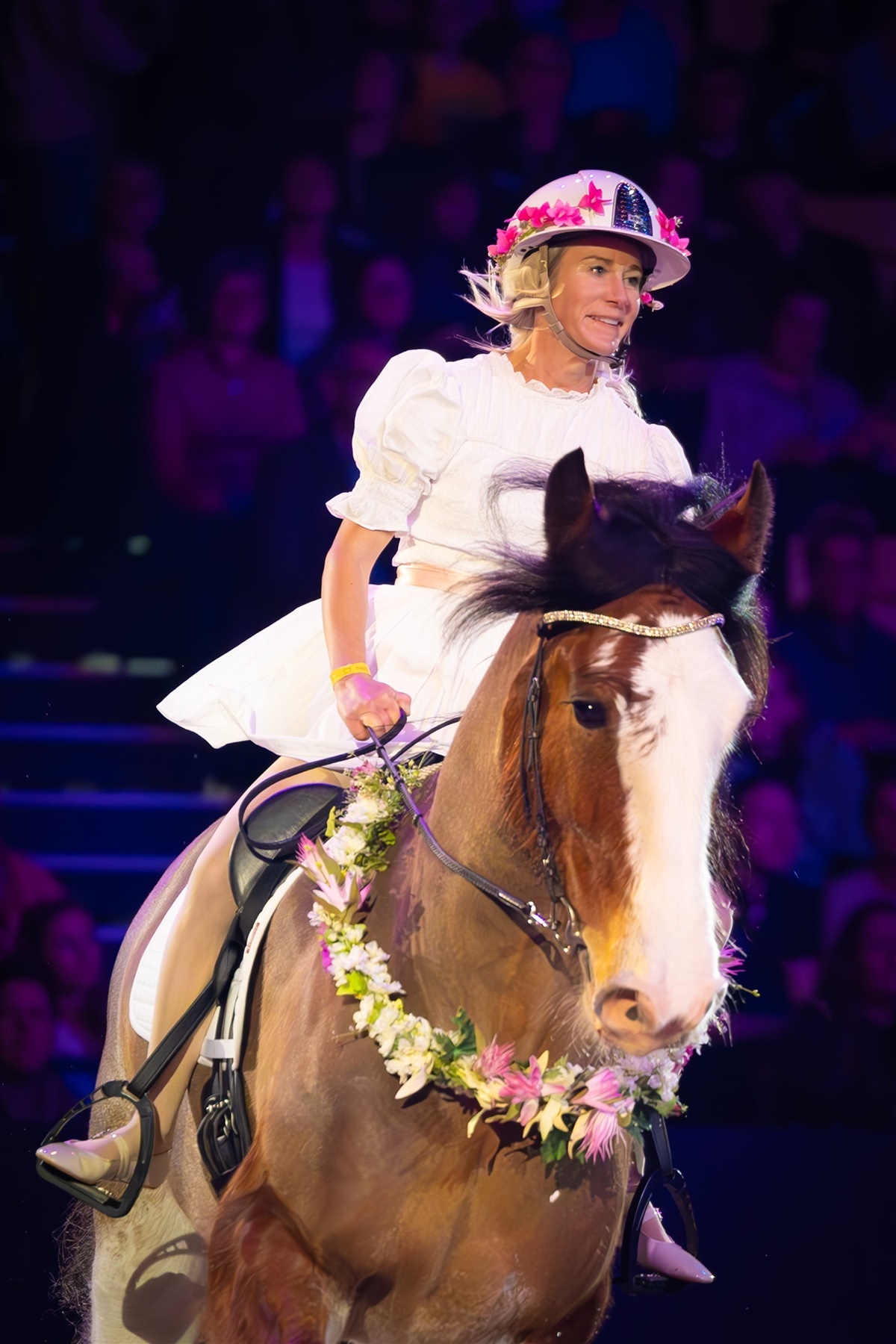 Det var dog bestemt ikke tilfældet, og til sangen Big Big World af Emilia Rydberg åbnede parret både fredagen og lørdagens gallashows med en fortælling om, hvordan vi som børn bare drømmer om, at være sammen med sin elskede hest. Efterfølgende kom en dygtig dressurekvipage ind og repræsenterede den modne, voksne udgave af den lille pige og red et freestyle program til musik.