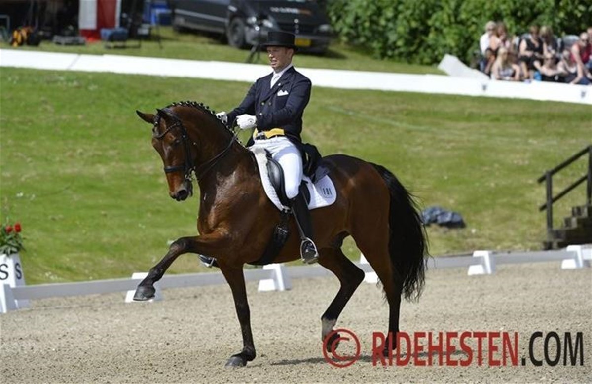 På den anden hest, FBW De Vito, der tidligere har været redet af den danske dressurrytter Lone Jørgensen, blev det lørdag til en sjetteplads i Grand Prix med 64,660%.