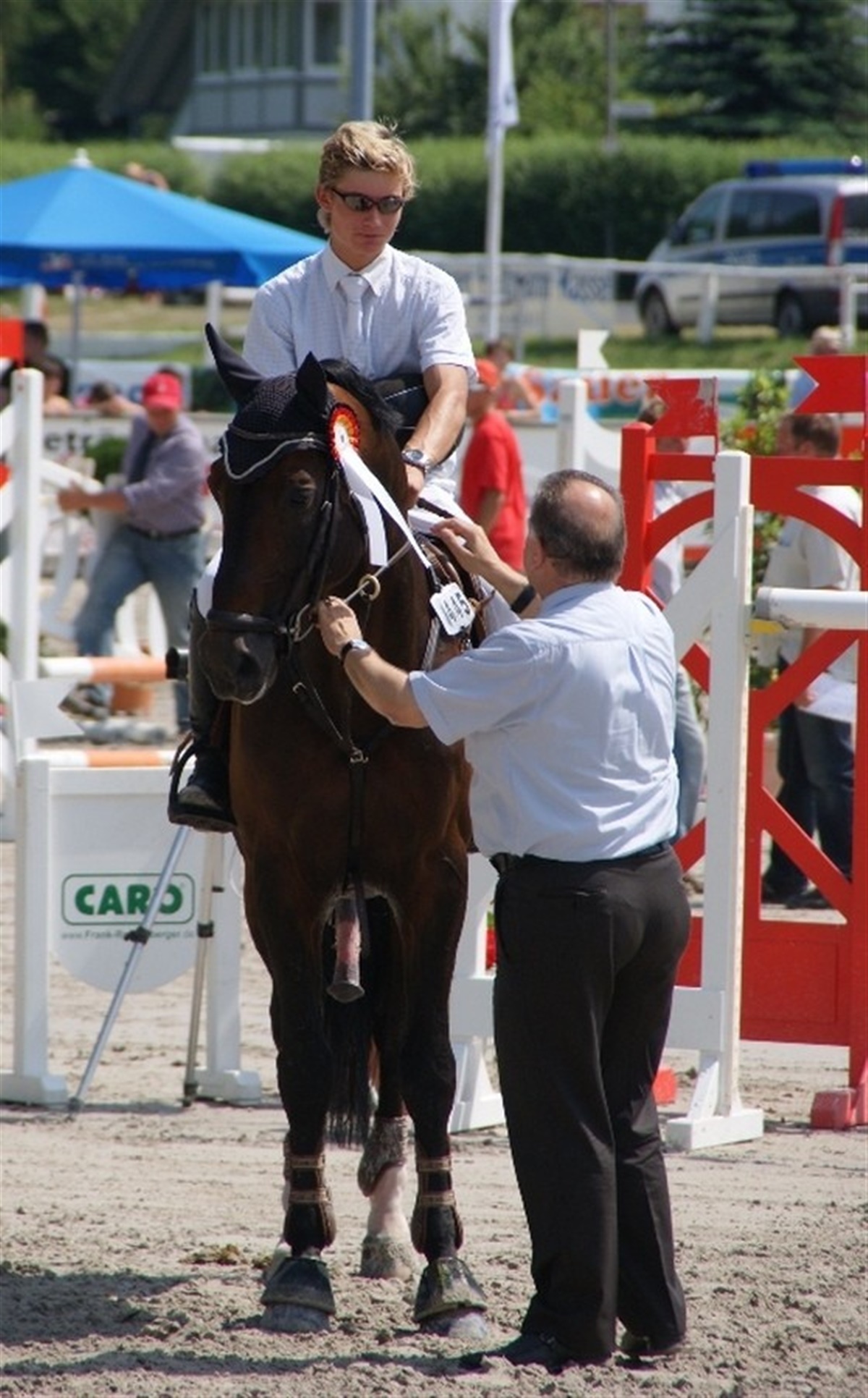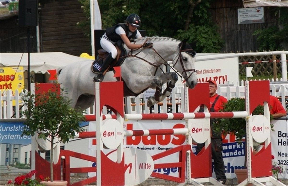 Tia-Maria lå længe til at vinde dagens springning i mellemturen, hvor der deltog ryttere fra syv nationer, men blev slået af næstsidst startende rytter, Patricia Siedel fra Tyskland, med 0,8 sekunder. Martin Dinesen Neergaard førte ligeledes sin klasse i den store tur, indtil der manglede fem starter, hvorefter han blev henvist til en flot tredjeplads. Begge ryttere tager til EM i Frankrig på søndag. Af øvrige resultater fra lørdagen i Spangenberg kan nævnes, at Rikke Haastrup blev placeret i Youngster med Caiser Cash. /Tippet nyhed.