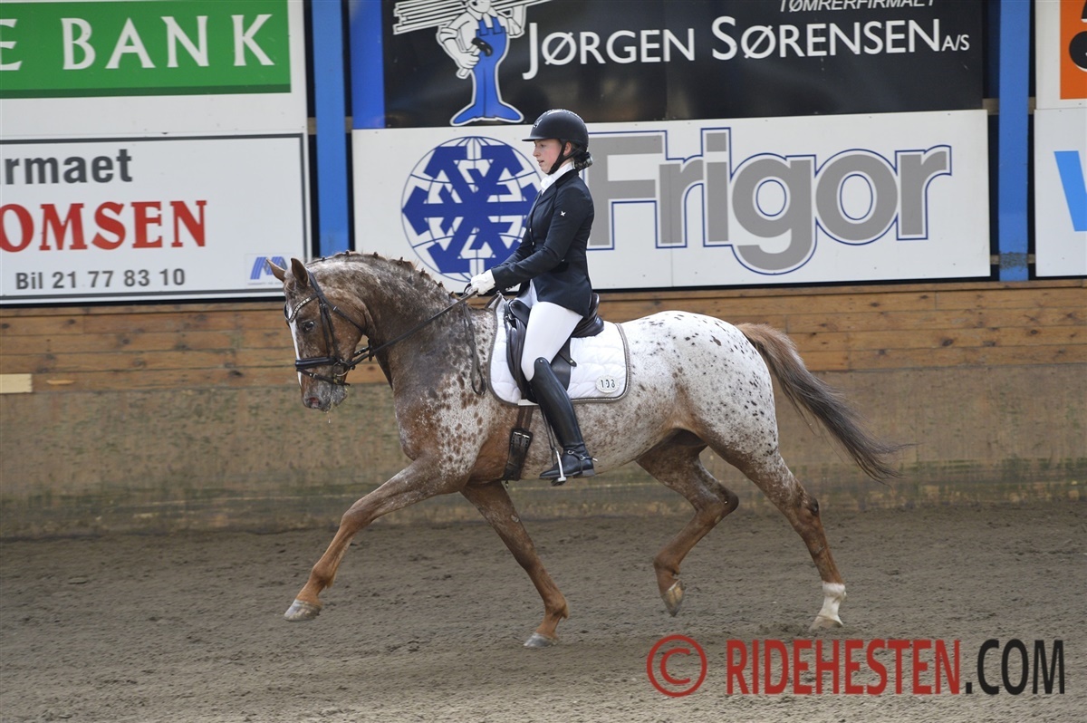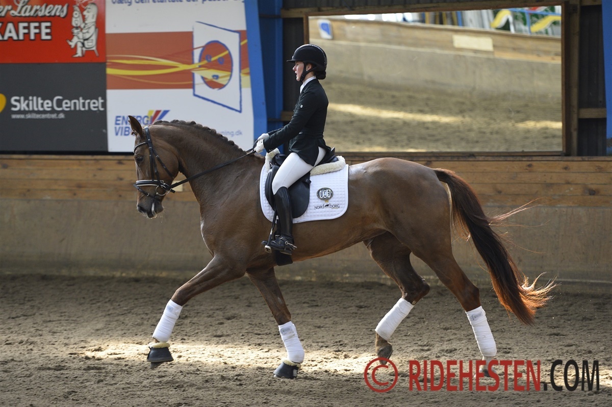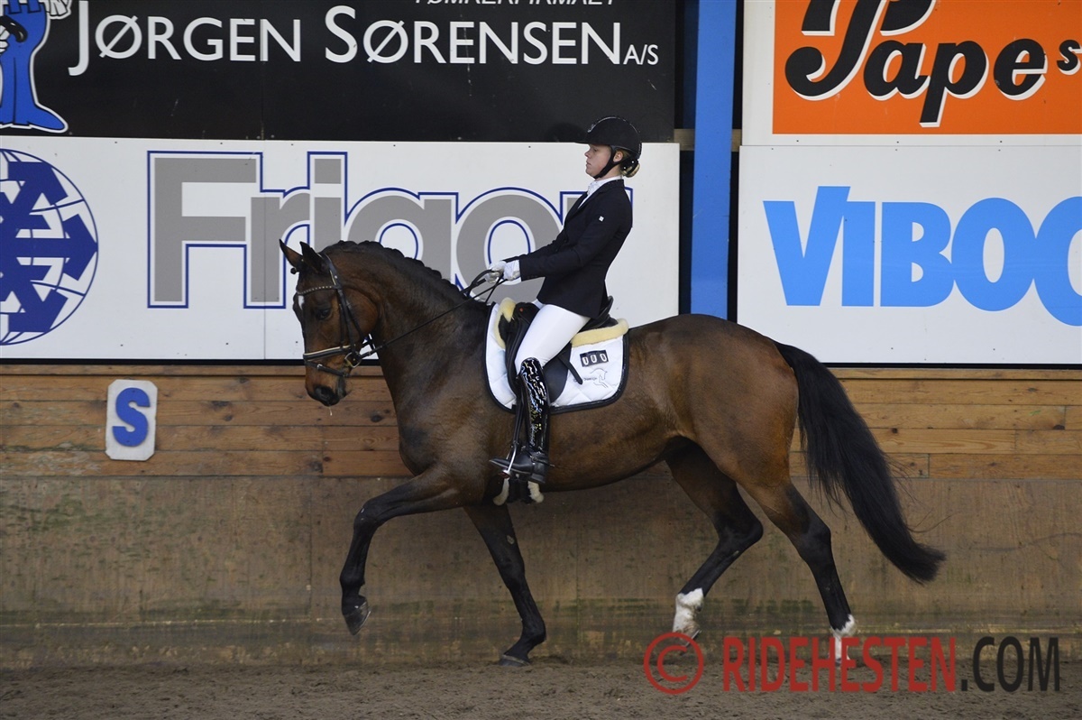 Vinderen af klassen blev Louise Vestergaard Kragh på den 5-årige L'espoir datter, Let’s Walk der bl.a. også deltog i Blue Hors Unghestechampionatet i Herning. De red i dag til 74,83%, med over 3% til nr. to i klassen. Det blev Line Tange Jacobsen på sin anden hest, Straighthorse Safira. Hun red til 71,72%. Nr. 3 i klassen blev Louise Christensen på Supreme’s Diamond. De red til 71,03%.