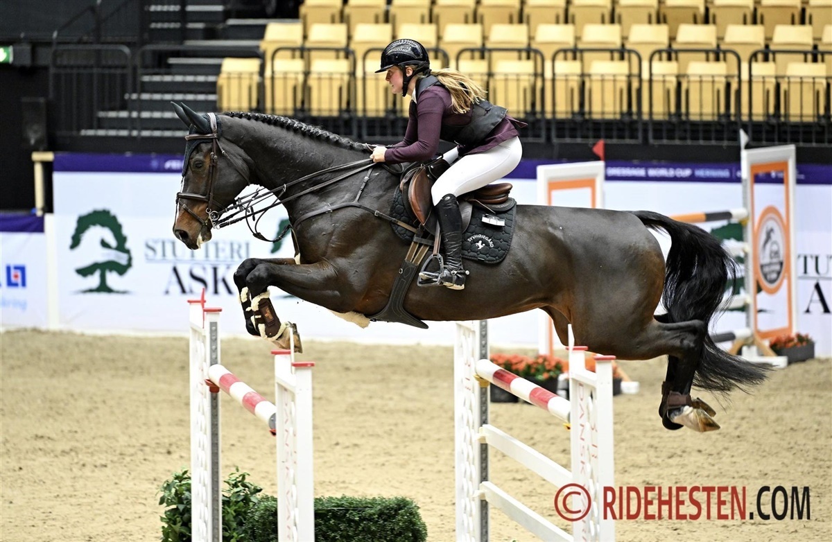 Mathilde Lind Skjøtt har i flere år redet på fuldtid, og hun driver nu sin egen forretning sammen med sin partner Tobias Vik Theien. Her ved World Cup Herning har Mathilde to heste med, som hun begge ejer halvdelen af, og hun fortæller, at hun er glad for, at hun har mulighed for at ride ved den her slags stævner i ny og næ.