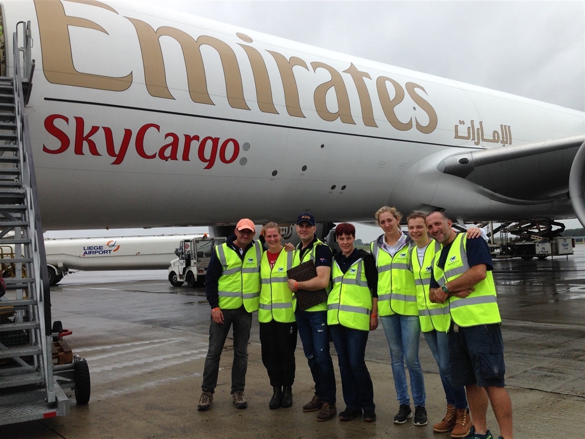 Da vi ankom på stævnepladsen stod de andre hestepassere og Jonas (landsholdsdyrlæge) klar til at tjekke hestene, alle hestene har taget flyveturen godt og virker friske og glade.