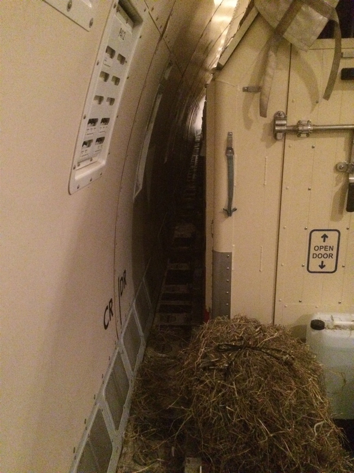 At være på et fly som hestepasser er noget anderledes. Man skal være god til at kunne sno sig ned af smalle gange med foder, vand og spande, inde ved hestene er det heller ikke altid, der er så meget plads, når der hønet er oppe. Foran i flyet er der plads til 11 passagerer. Der er et lille tekøkken ombord, hvor vi kan varme den mad vi har fået med.