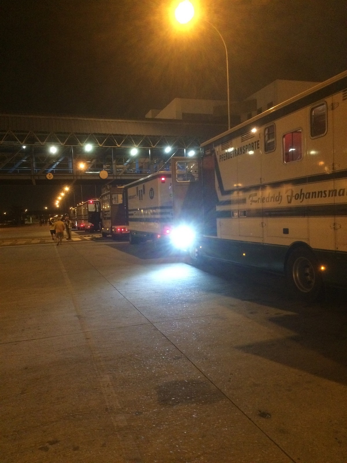 Omlæsningen i Rio gik forholdvis stærkt, hvor vi læssede hestene direkte over i lastbiler fra Johannesmann uden for lufthavnen. Der var sindsygt meget politi og militær, der eskorterer os til stævnepladsen, hvor de blandt andet stoppede trafikken på motorvejen for os.