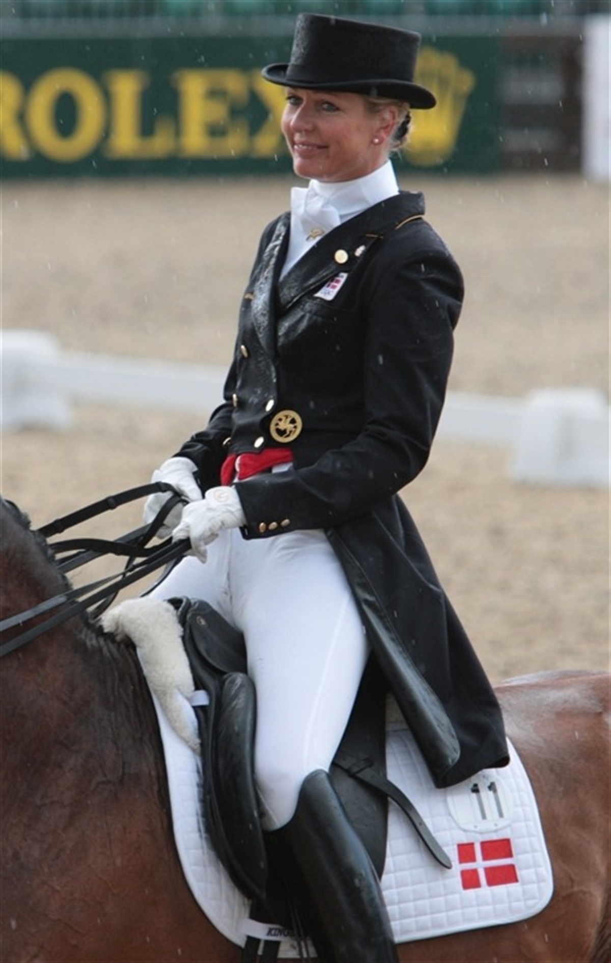 Så har samtlige 12 nationer haft to ryttere i konkurrence ved EM i dressur. Naturligvis, fristes man til at sige er Hollænderne i front med 153,787 points foran Tyskland med 141,958 points og med englænderne på tredjepladsen med 140,0 points. Anne van Olst og Exquis Clearwater leverede i dag et flot program, hvor Clearwater udtrykte en energi og gålyst, der resulterede i flotte passage/piaffe øvelser. På et tidspunkt lå parret på over 70%, men i passagen før anspringet på langsiden misforstod Clearwater Anne, og det gav uro og kostede også værdifulde points i det efterfølgende anspring. Anne fik 69,404% og dermed er danskerne på fjerdepladsen med 137,447 points foran Sverige med 136,893 points. Der er ingen tvivl om, at det i morgen kommer til at blive mere spændende end sædvanligt ved europamesterskaberne, kun hollænderne sidder fast i sadlen på førstepladsen, mens alt kan ske for de førende nationer i morgendagens konkurrence, hvor der også er lovet dagsregn.