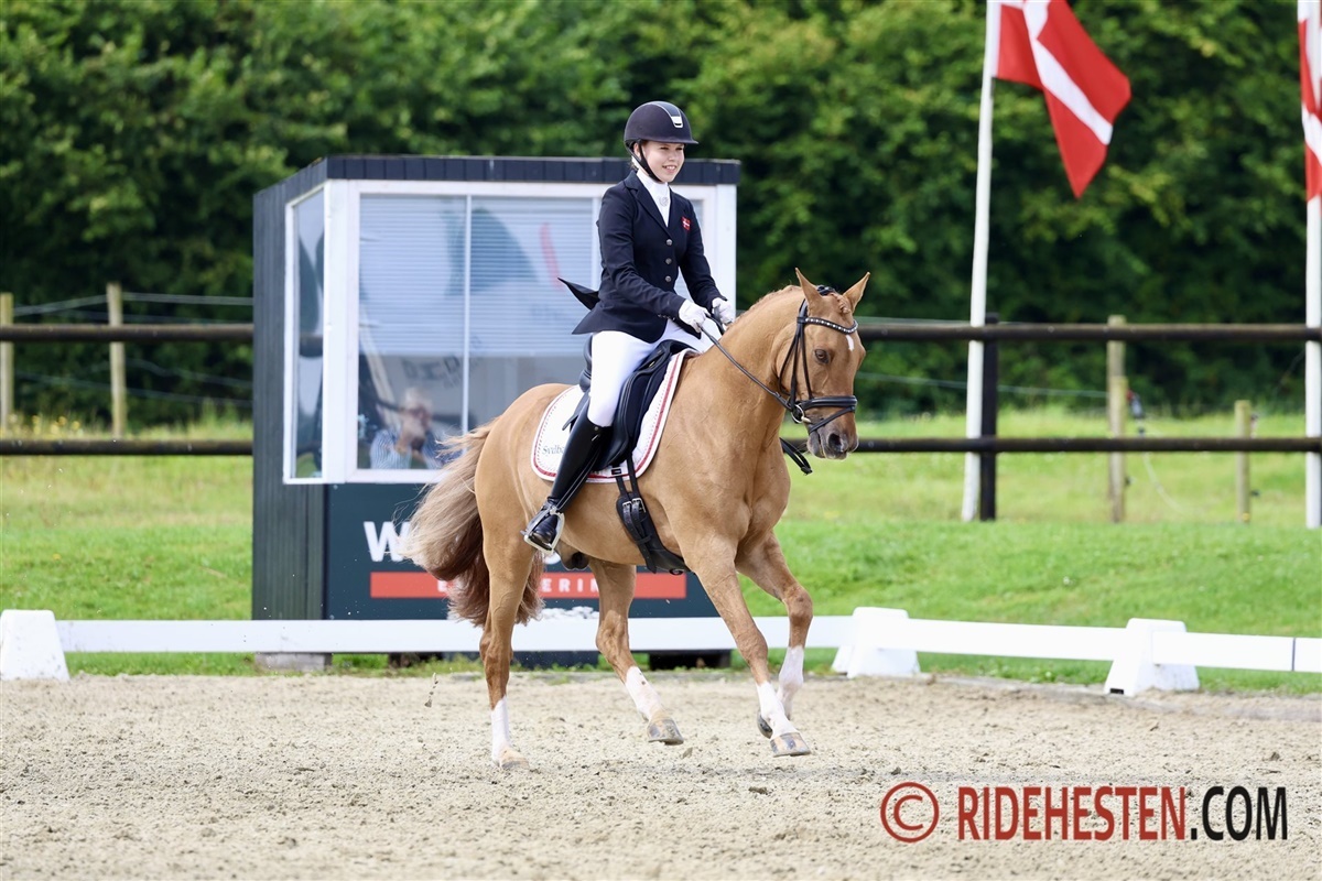 Det danske hold bestod af Mathilde Lund Meilbak på Monarch S, der i dag red til 62,095%, Sofie Laursen på Mein Astaire e. Fs Mr. Right/ Pilgrim's Red, der opnåede 69,809%, Isabella Struntze Torp på Lykkehøjs Dream Of Dornik e. Melli's Dornik/ Cupkeshof Winobert, der red til 69,571% og Agnes Ørnskov Beier, der ikke bare sikrede det bedste danske resultat i dag med 72,048% men faktisk også klassens bedste resultat med Timms My Fritz e. Grenzhoehes My Fireball/ Orchard d'Avranches. Efter at have slettet holdets dårligste resultat, endte Danmark med et samlet resultat på 211,428 og var derfor nordiske mestre for hold i ponydressur for kat. 2-ponyer.
