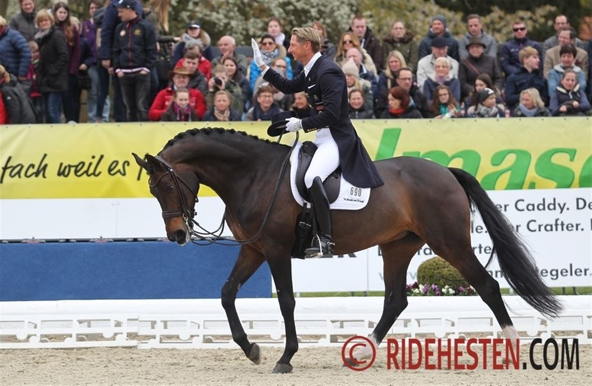 Vivi og Christian Vang Lauridsens 12-årige DV-vallak Hedelunds Mefisto e. Michellino/ Matador (opdr. Rikke Kvist) blev under tyske Hubertus Schmidt nr. 10 med 70,220% i den indledende Grand Prix i lørdags. I går søndag avancerede ekvipagen til nr. 5 i Grand Prix Kür med 73,675%. Klassen blev vundet af svenske Patrik Kittel på den svenske hoppe Deja e. Silvano/ Don Schufro med hele 80,300%.