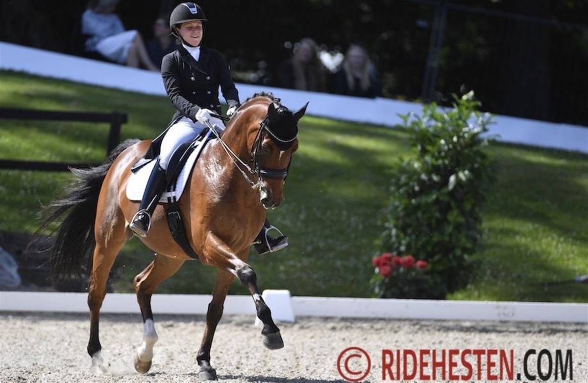 Herefter valgte hun at lade 16-årige Line Fjeldgaard Jensen overtage tøjlerne og dermed hjælpe en ny U18-rytter til tops. De fik hurtigt kvalificeret sig til både ECCO Cup og junior-DM. Men desværre nåede de kun at starte en enkelt kvalifikation af ECCO cup, før det hele sluttede med et brag, fortæller Jacqueline:
