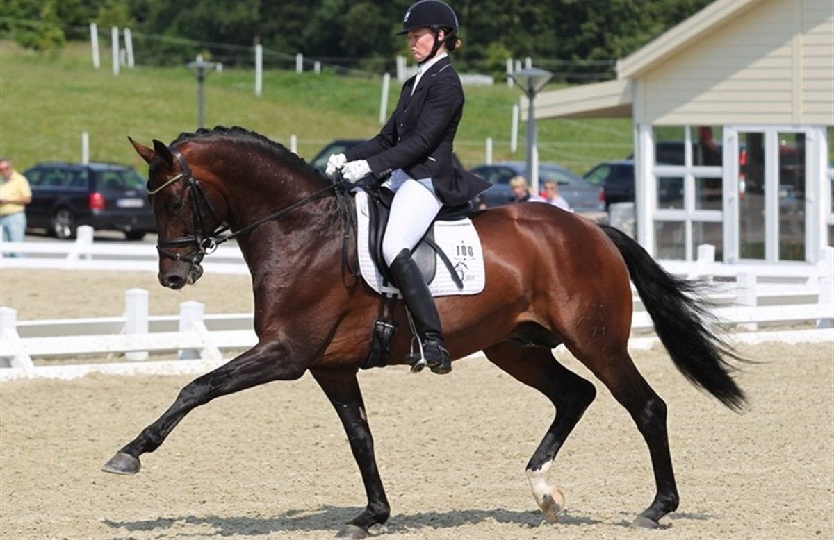 Mellemrunde Vest af DRF's championat for unge dressurheste afvikles i dag lørdag, mens Mellemrunde Øst følger efter søndag. Fredag bød i Middelfart på opvarmningsklasser i alderskategorierne 4, 5 og 6 år. Her blev dagens absolut højeste score høstet af Blue Hors-berideren Maria Anita Andersen med hingsten Blue Hors Bentley e. Belissimo M/Weltmeyer, der i alt fik 9,24. Den første mellemrunde-klasse er netop afviklet og her var rytterne fra Helgstrand Dressage helt suveræne, i det Anne Blomgren sikrede sig de første to pladser med en kåret hingst og en guldmedaljehoppe og Maik Kohlschmidt tog sig af tredjepladsen. Ridehesten.coms fotograf er på pletten og bringer senere i dag nyheder med friske billeder fra Middelfart.
