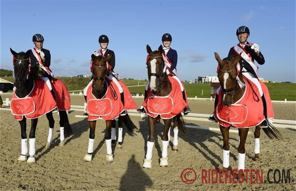 Hele 24 hold var til start i kvalifikationen i DRF mesterskabet for hold. I dag mødtes de 6 bedste i en spændende finale. Det blev ikke overraskende holdet fra Vallø Sportsrideklub der for fjerde år i træk løb med sejren med 428,156 point foran Midtsjællands Rideklub med 421,829 point og på 3. pladsen Sdr. Hygum Rideklub med 419,265 point. Holdet fra Vallø bestod af Maja Andreasen/Skjoldgaard Monto-Vo, Rune Villum Hansen/Neikos, Joachim Chr. Thomsen/Søbakkehus Mia-Bella og Cathrine Dufour/Søndervangs Arrogant.