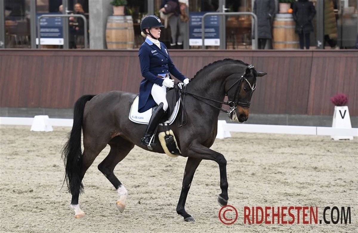 Helgstrand Dressages svenske rytter Jeanne Högberg besatte andenpladsen på den blot 9-årige svenskfødte hoppe Astoria e. Sir Donnerhall II/ Quaterback med 74,767 %. De blev efterfulgt af Anne Troensegaard fra Vallø Sportsrideklub på tredjepladsen med 73,367 % opnået med den 11-årige danskavlede trakehnervallak Kipling TSF e. Hofrat/ Hohenstein (opdr. Peter Christensen).