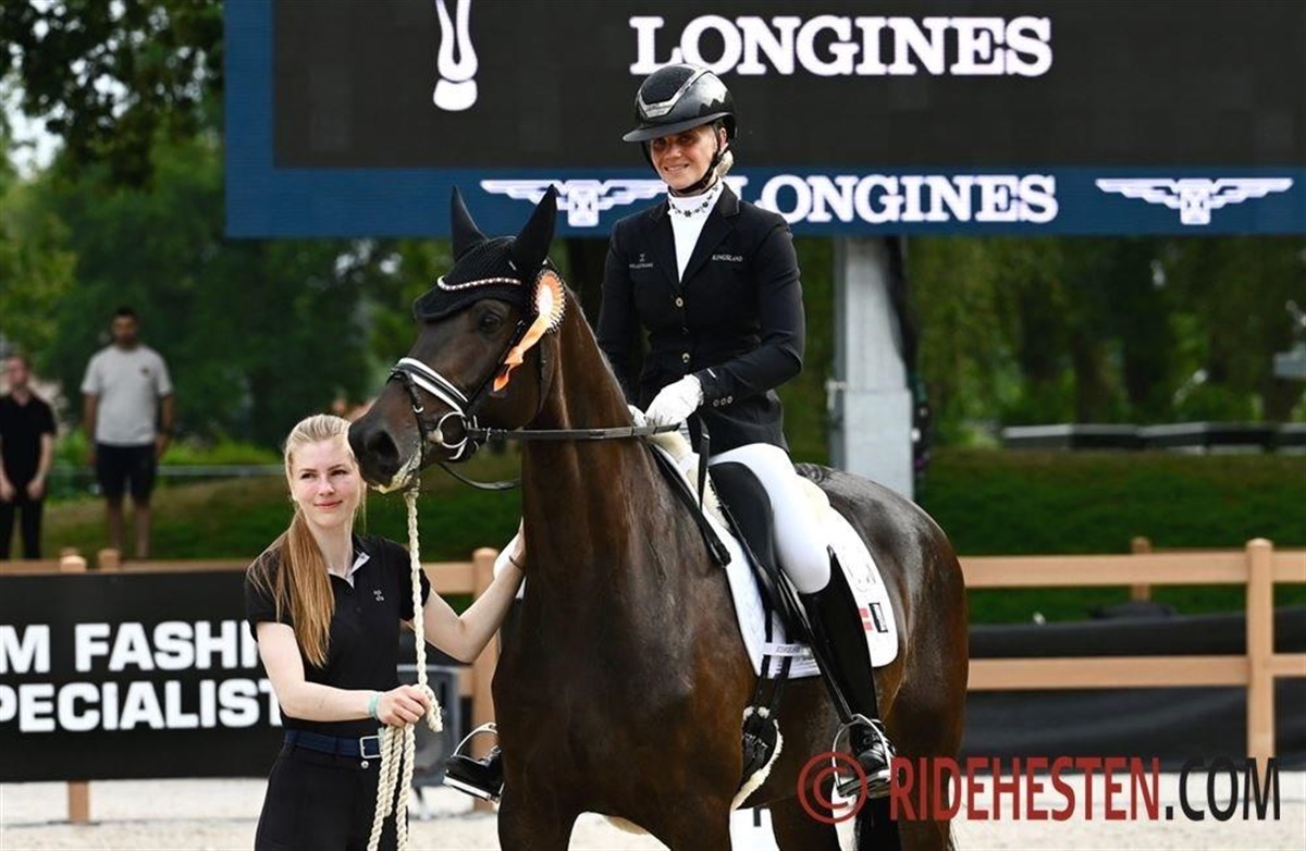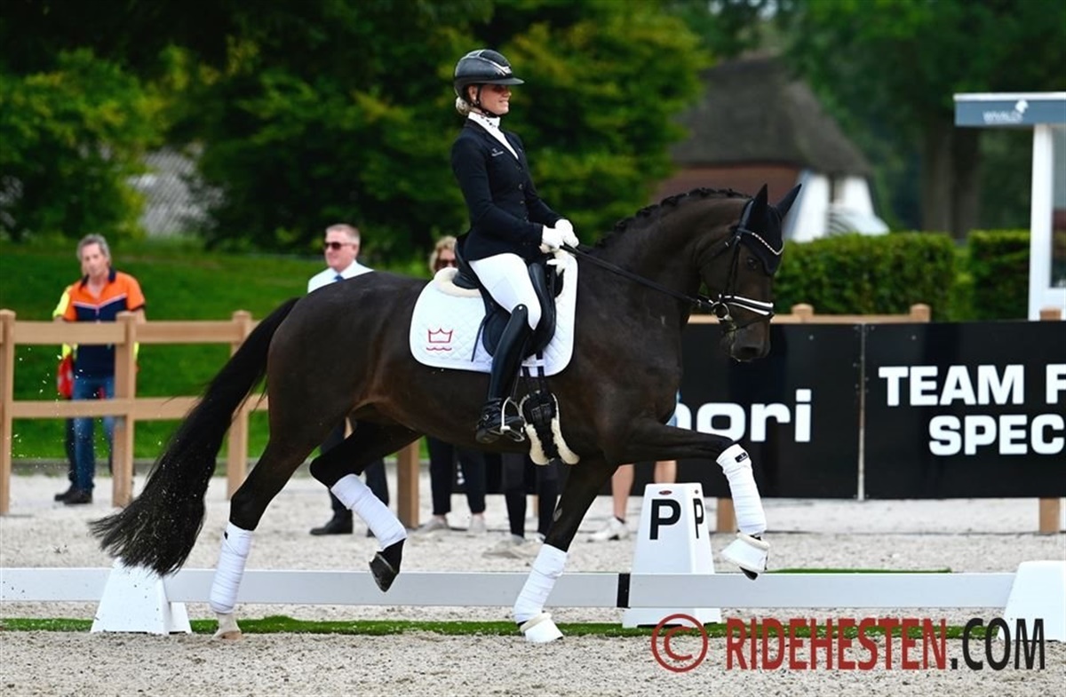Dommerne kunne lide, hvad de så, og det var bl.a. en imponerende trav og i det hele taget en hest, der gik lidt mere afspændt end i går. De belønned ridtet med 8,5 for trav og kapacitet, men skridtkarakteren lød på 8,2 og 8,3 for galop, men kun 7,9 pga. to ufrivillige galopanspring i travprogrammet.