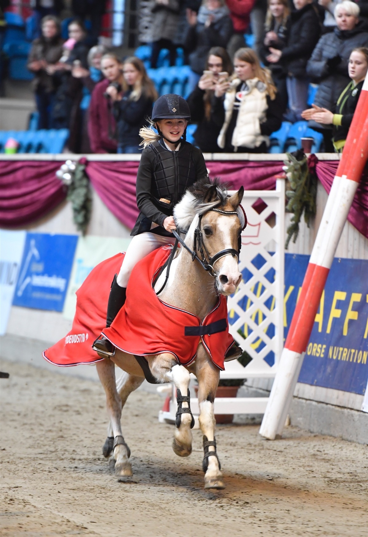 Det blev en overbevisende Michelle Buchhave Mortensen, der med Clements Reindeer, vandt finalen i AB RIDEUDSTYR - Kat. 1 - Messingtur til AB RIDEUDSTYR Christmas Show WARM UP for ponyer på Vilhelmsborg i dag. Hun vandt også første kvalifikationsrunde i onsdags og kunne så i dag også modtage den røde roset for hele Messingtur for kategori 3 ponyer. Det blev Sofie Tholstrup Skjøth, der med ponyen, Mannabakkens Leviosa, vandt Messingtur for kategori 2 ponyerne. Og i Messingtur for kategori 3 ponyer sprang Alma Rose Gudman Andersen på ponyen, Lyngvejens Dushe sig til førstepladsen.
