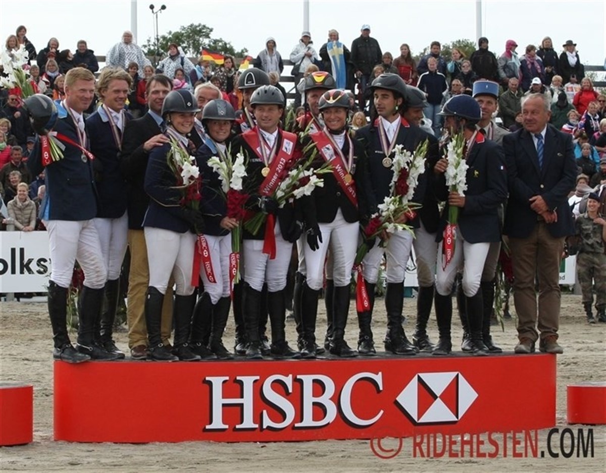 Der var sølv til tyske Ingrid Klimke og FRH Escada JS, der inden springningen lå placeret som nr. 4, men altså avancerede to pladser og tog sølvet med 39,40 strafpoint. Der var bronze til William Fox-Pitt, der lå på 2. pladsen inden springningen. Han red i dag med 4 fejl i springningnen, og sluttede med 40,60 strafpoint.