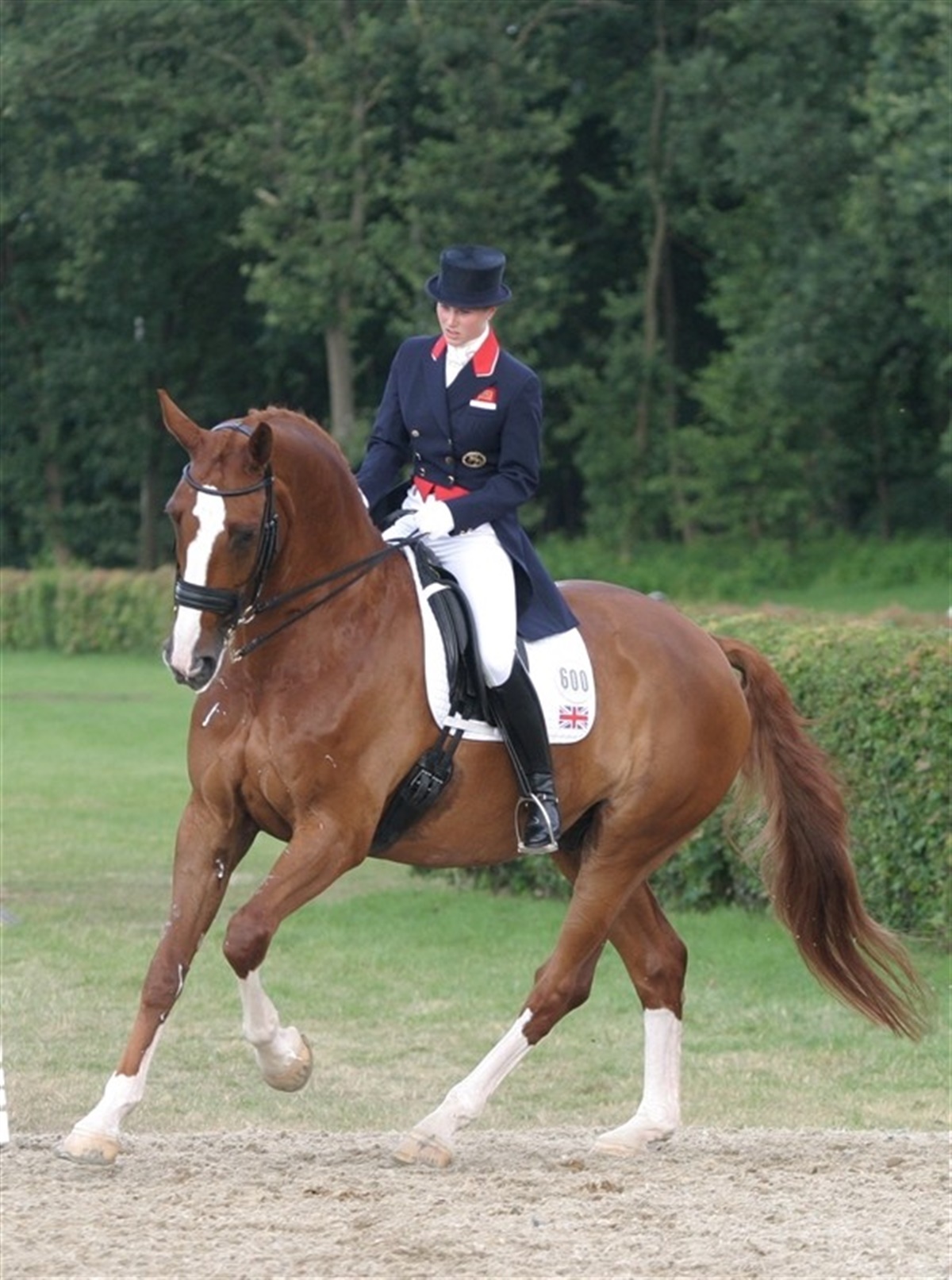 Dansk Varmblodshesten Mistral Højris e. Michellino/Ibsen, opdrættet af Betty Rasmussen, scorede med sin engelske rytter Laura Bechtolsheimer imponerende 75,333% i Grand Prix ved Olympia Horseshow i mandags. Så høj en score er aldrig nogensinde tidligere opnået i international dressur af en engelsk rytter. Desværre havde det bragende bifald skræmt den 12-årige Mistral, så han under tirsdagens Grand Prix Kür, som var World Cup kvalifikation, blev usikker og begik et par kostelige fejl. Alligevel blev det til en flot femteplads i Küren.