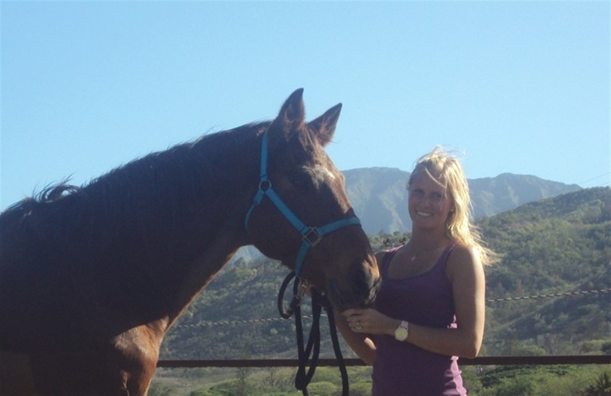 Under et længere USA-ophold fik Chrisitna Thinggard Jacobsen i slutningen af 2010 mulighed for en 10-dages tur til Hawaii sammen med hestetandteknikeren, Wallace Ward. Med ham havnede hun i Honolulu på øen Oahu. Målet med turen var ikke at forbedre sin springtræning, men at opleve, hvordan man har heste på Hawaii og så få sig en enestående oplevelse. Og det fik hun. – Jeg har aldrig set noget så smukt i mit liv før. Enhver, der kommer til Hawaii, vil elske at ride i den flotte natur, man har her. Det kan ikke beskrives med hverken ord eller billeder, lyder det. Trods de flotte naturindtryk var hestene og deres generelle levestandard dog ikke noget at råbe hurra for. Blandt de anderledes oplevelser var også mødet med en dansk varmblodshest, som Christina pludselig stødte på under sit ophold.