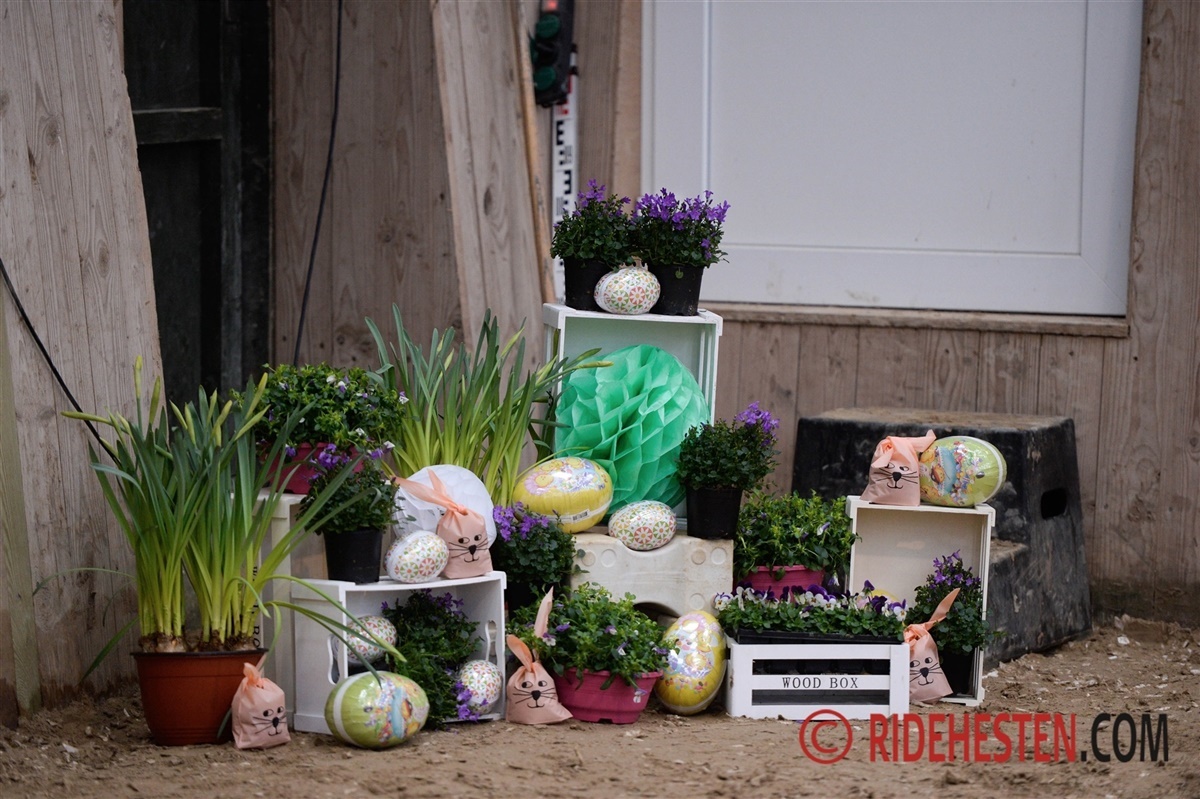 Stævnerne på Møllebakken byder altid på kvalitet helt i toppen, da stævneforholdene rigtig gode. Rideklubbens to ridehuse er bygget sammen, sådan at man både kan se opvarmning og konkurrence ved bare at vende hovedet. De har ydermere fået fiberbunde i begge ridehuse, sådan at det er de mest optimale forhold for hest og rytter og i weekendens anledning med påsken lige om hjørnet, var der pyntet yderst flot op.
