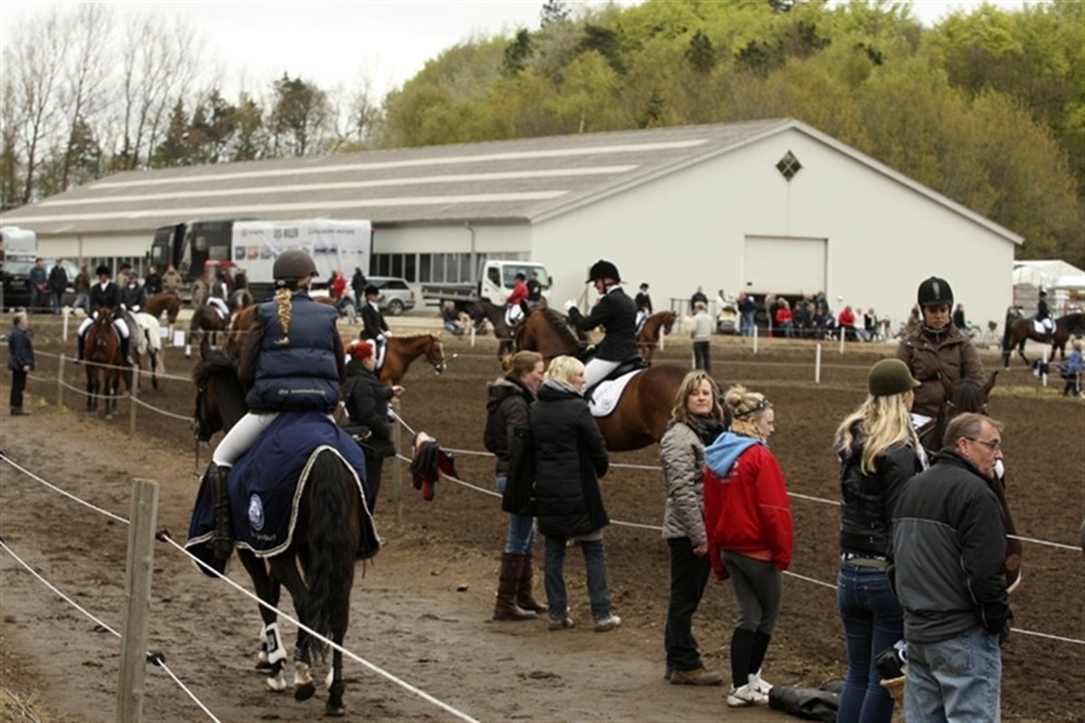 Traditionen tro er det enorme Morsø ridestævne blevet skudt i gang i dag og det slutter ikke før på søndag. Hundredvis af heste og ponyer er med deres ryttere og familie valfartet til Mors for at ride distriktsstævne spring og dressur. Der rides på ikke mindre en 6 baner ad gangen, 4 dressurbaner og 2 springbaner, så der er hele tiden noget at se på for publikum, når altså bare at man er rigtig klædt på. Ja, for rigtig forårsvejr, kan man ikke ligefrem sige at det var i dag, hvor det startede med en smule regn og resten af dagen var det bare gråt og ikke ret varmt. Når solen ikke kunne komme frem fra sit skjul og sprede varme, så varmede det til gengæld godt om hjertet at se, hvordan der blev klappet og heppet på de mange ryttere. Flere rideklubber er taget til ridestævne i store grupper, og det gør det jo selvfølgelig ekstra hyggeligt, når man er mange sammen. Eftersom der rides på 6 baner, bliver der også afviklet mange forskellige klasser, så niveauet er vidt spredt blandt rytterne - der er de der er garvede som springer højt eller rider dressur med høj hat, og så er der de ekvipager, som måske er af sted til stævne for første gang. Heldigvis er der plads til alle, men det er ikke altid nemt når man rider stævne for første gang, så for enkelte blev det også til en lille tåre eller to. Men alt i alt blev førstedagen en god start på Kristi Himmelfartsstævnet og i morgen lover de heldigvis tørvejr - forhåbentlig.