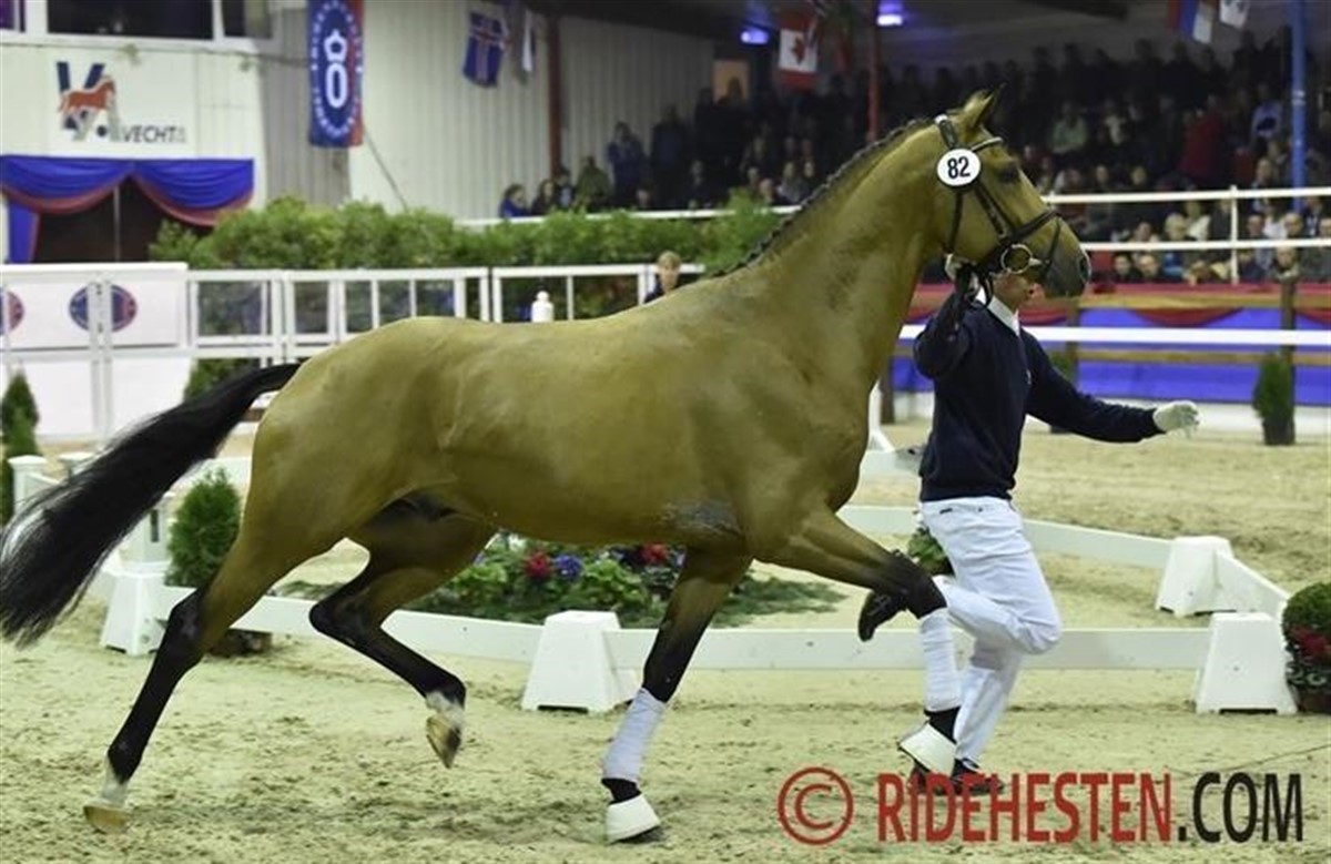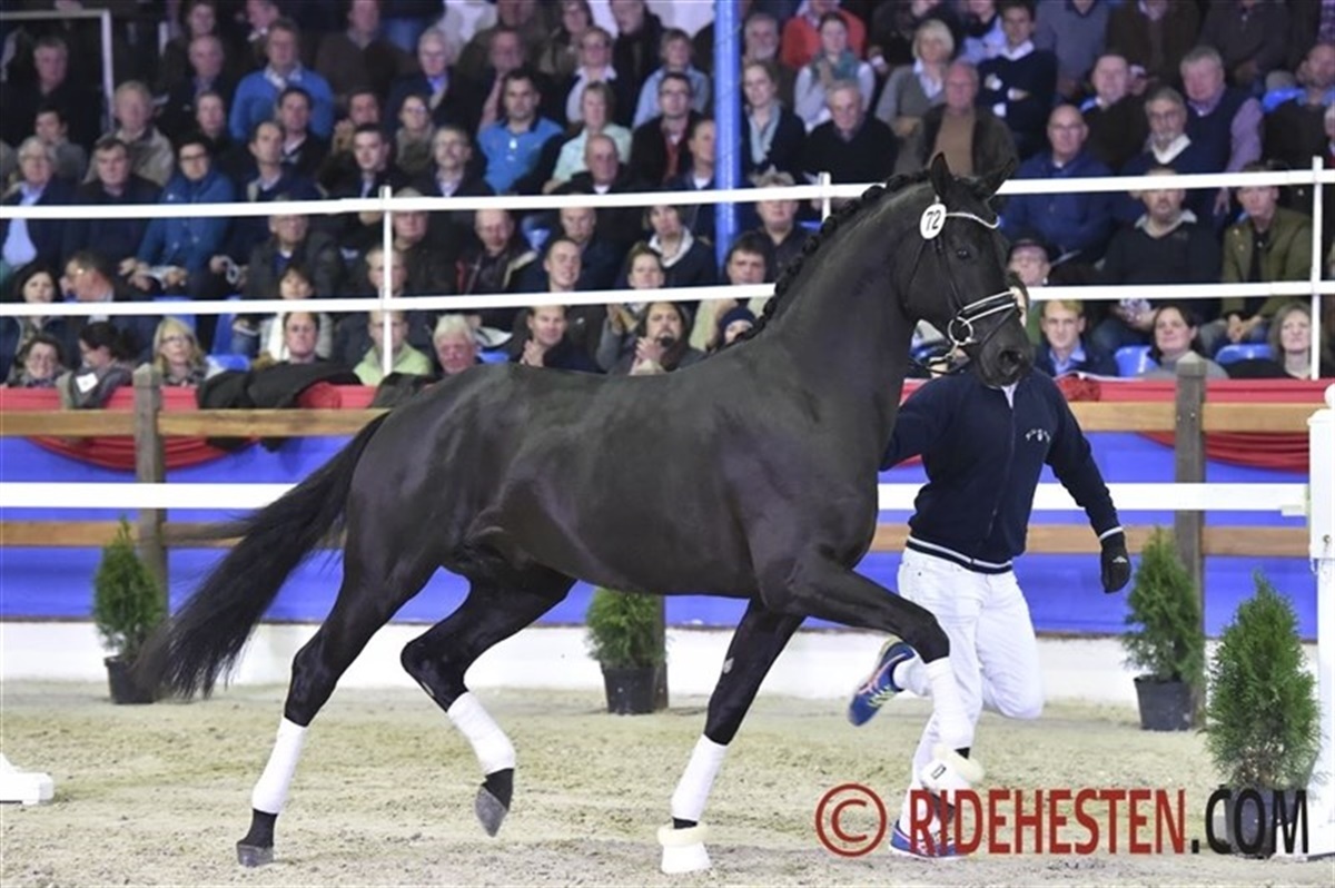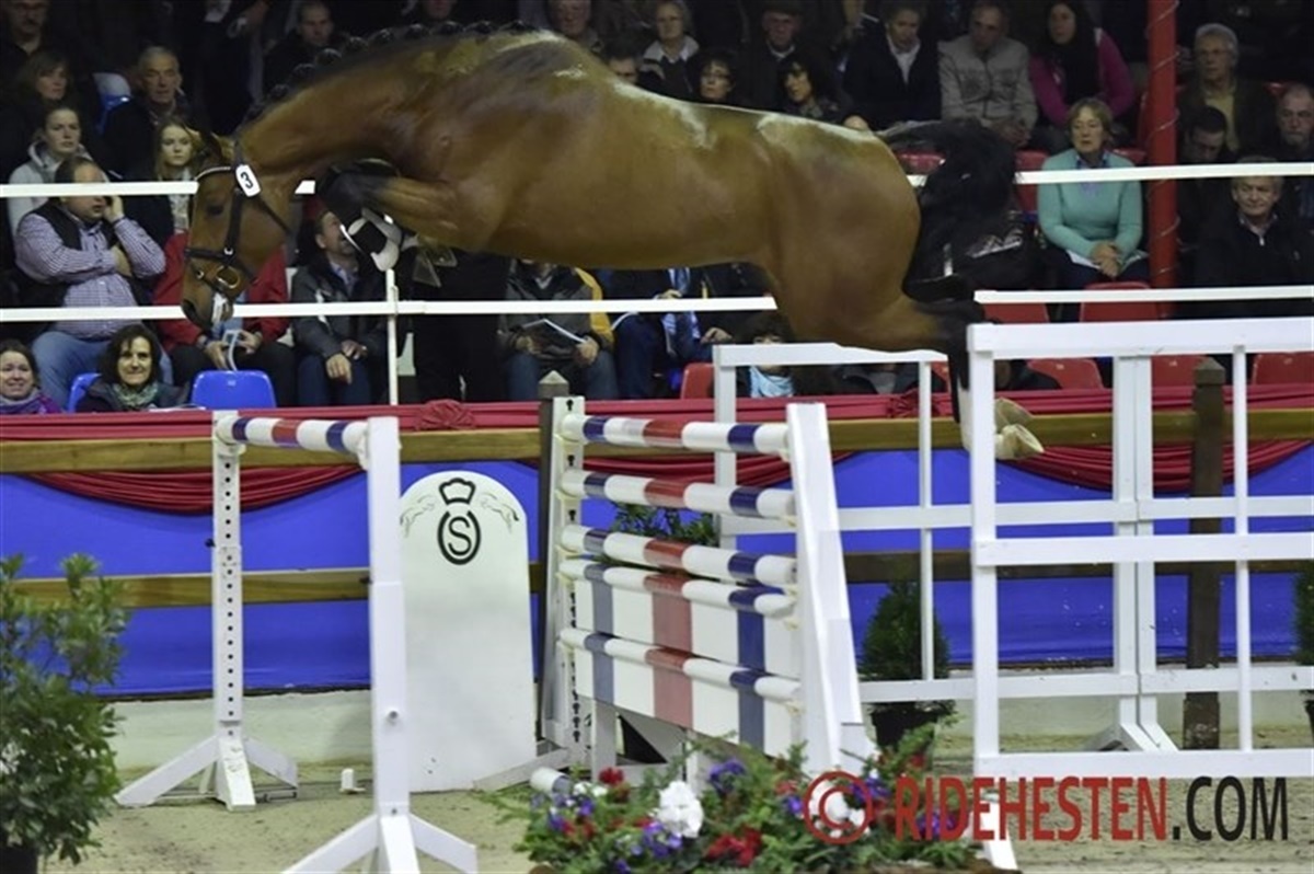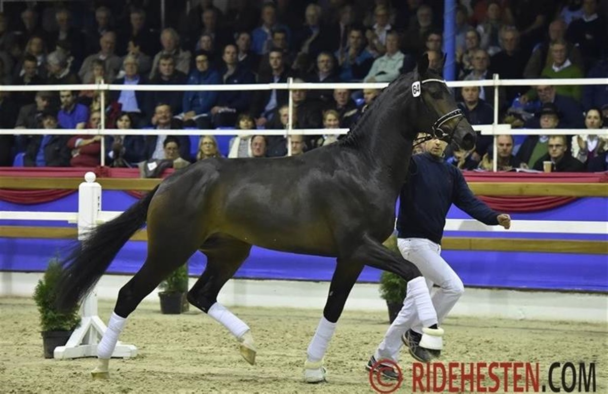Forud for hingstekåringen i Oldenburg har Anderas Helgstrand indkøbt en Foundation/Fürst Heinrich-søn nr. 64, der imponerde i dag med hingsteudtryk, moderne type og et eminent og kraftfuldt bevægelsesforløb. Publikum gik i selvsving inde i hallen over den mørkebrune hingst, men bedømt efter dagens bifald, så kommer Helgstrand i hård kamp mod Millennium-sønnen med kat. 72. Opdateret - kåringskommissionen har netop offentliggjort antallet af præmiehingste og Helgstrands hingst er ikke blandt dem, og dermed er han ikke med i kampen om fløjpladsen, det er Millinnium-sønnen. Og den herlige Zack-søn fra Blue Hors til gengæld! Og publikum var begejstrede for hingstestationens topmoderne unghingst.