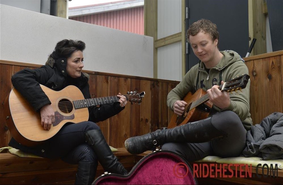– Jeg er ikke så god til at lære at spille guitar, og Ester har ikke så meget tid til at komme i gang med springningen på hendes nye hest her hos mig, men det er fint for os. Vi gør begge to noget vi godt kan lide, og det er hyggeligt, indleder Kasper H. Hansen. Ester understreger dog, at Kasper nok skal få lært at spille på den håndbyggede guitar, som hun har lånt ham.