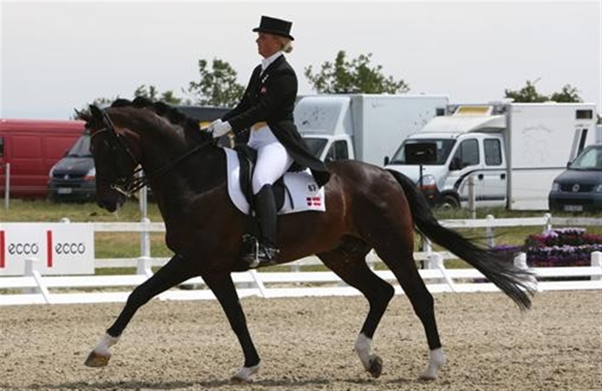 Efter lørdagens 2. kvalifikationsridt er der ikke de store rokeringer i top 3 hos hverken junior- eller ungryttere, der disse dage rider DM i dressur i Vallensbæk. Nanna Skodborg Merrald fortsatte i dag med af brilliere med et rigitg flot ridt på Millibar. Lørdagen bød på 2. kvalifikation og her scorede ekvipagen hele 74.65%. 2. og 3. pladsen gik igen i dag til Catrine Dufour, som med Atterupgaards Cassidy fik 73.16% og Cadillac 72.46%. Hos ungrytterne lå Anna Kasprzak fortsat lunt på både 1. og 2. pladsen. Til forskel fra i går var det dog i dag på Donna Fetti, hun red 1. pladsen hjem med 70.21%. På Blue Hors Future Cup blev det til 68.84%. Camilla Orloff, der red til 66.42%, blev i dag skubbet ud af top-3 af Rikke Sofie Bøllingtoft, der med 67.32 Finale kilede sig ind på 3. pladsen. I morgen søndag rides finalerne! Nyhed om fredagens 1. kvalifikationsride lød her på siden lørdag morgen: Juniorrytter Nanna Merrald red i går et imponerende program fyldt med flotte højdepunkter. Millibar, som hun også havde med til dette års europamesterskab, synes at være i topform ved dette års DM - dommerne var begejstrede for ekvipagen og belønnede dem med 72,5%. Cathrine Dufour på Atterupgaards Cassidy fulgte efter Nanna med 70,5%. Også Cathrine besatte 3. pladsen, blot på hendes anden hest Cadillac. De næste placeringer blev besat af hhv. EM deltageren Cecilie S. Madsen på Laurentius og Nanna B. Madsen med Skjoldsgaard Monte-Vo. Blandt ungrytterne viste Anna Kasprzak sig i top ved at ride begge sine heste ind i top 2. På Blue Hors Future Cup blev det til sejr i første kvalifikationsrunde med scoren 70.53% og med Langkjærgaard´S Donna Fetti, som tidligere har været igennem et længere sygdomsforløb, blev det til 68.68%. Anna Kasprzak vandt sidst i juli individuel bronze ved EM i dressur kür for ungryttere, og dette var første gang, at en individuel ungrytter vandt EM-medalje i dressur til Danmark siden 1982. På tredjepladsen i DM'ets 1. kvalifikationsrunde kom Camilla Orloff med Utah, der red til 68.42%. Herefter fulgte Rikke Sofie Bøllingtoft med Finale og Simone Ahlers Pedersen med Cavalér. I dag mødes de 24 bedste junior- og undryttere i 2. afdeling. For at gå videre i finalerne søndag skal ekvipagerne kvalificere sig blandt de bedste 15 i 2. afdeling.