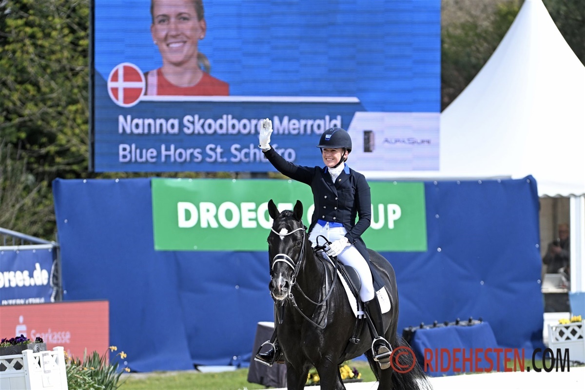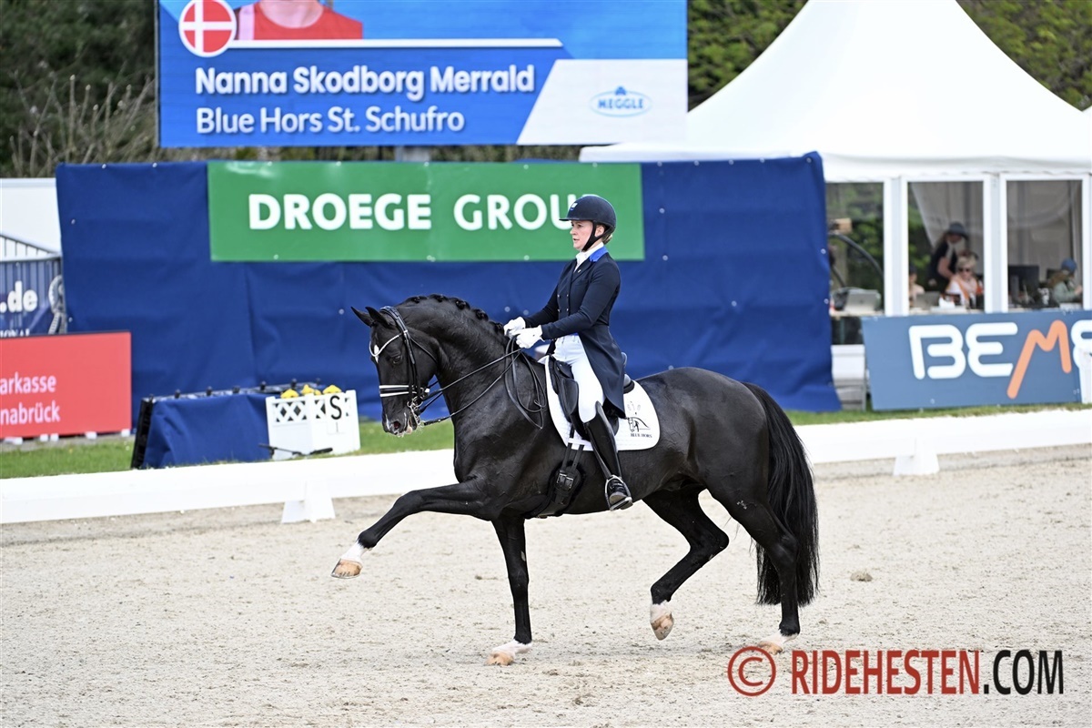 Nærmest kun lige hjemvendt fra World Cup-finalen i Omaha, har Nanna haft tre heste til start ved det populære stævne i tyske Hagen og her er det blevet til seks placeringer ud af seks mulige. Med Blue Hors St. Schufro e. St. Moritz Junior/ Blue Hors Don Schufro blev det til placeringer som nummer to og fire, mens det på Blue Hors Don Olymbrio e. Jazz/ Olympic Ferro blev til en anden - og tredjeplads.
