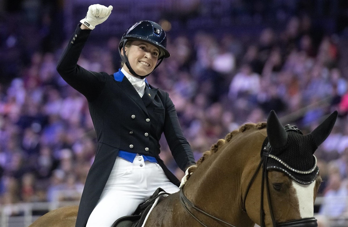 I går aftes i Omaha, USA, red Nanna Skodborg Merrald sit personligt bedste resultat i Grand Prix Freestyle. Det gjorde hun i sadlen på Blue Hors Zepter e. Blue Hors Zack/Wolkentanz II ved World Cup-finalen 2023, og det sikrede hende en plads på podiet, som den næstbedste. Placeret lige imellem to stærke tyske konkurrenter, Jessica von Bredow-Werndl øverst på podiet og Isabell Werth på tredjepladsen.