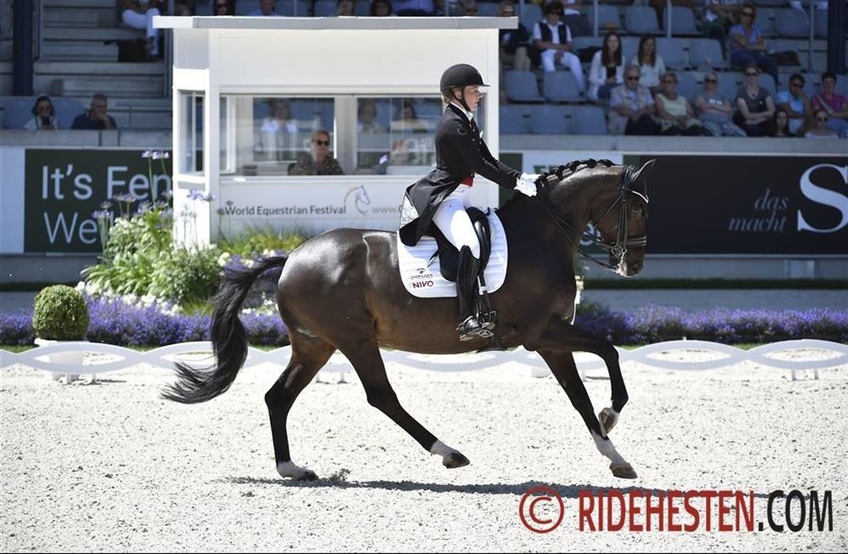 Nanna red den 17-årige hoppe Atterupgaards Orthilia e. I.P.S. Gribaldi/ Donnerschlag (opdr. Atterupgaard) og sammen opnåede de 78,930 procent i deres kür. I går tog Nanna fjerdepladsen i Grand Prix, og dermed tager hun hjem fra Lyon med to top-5 placeringer.